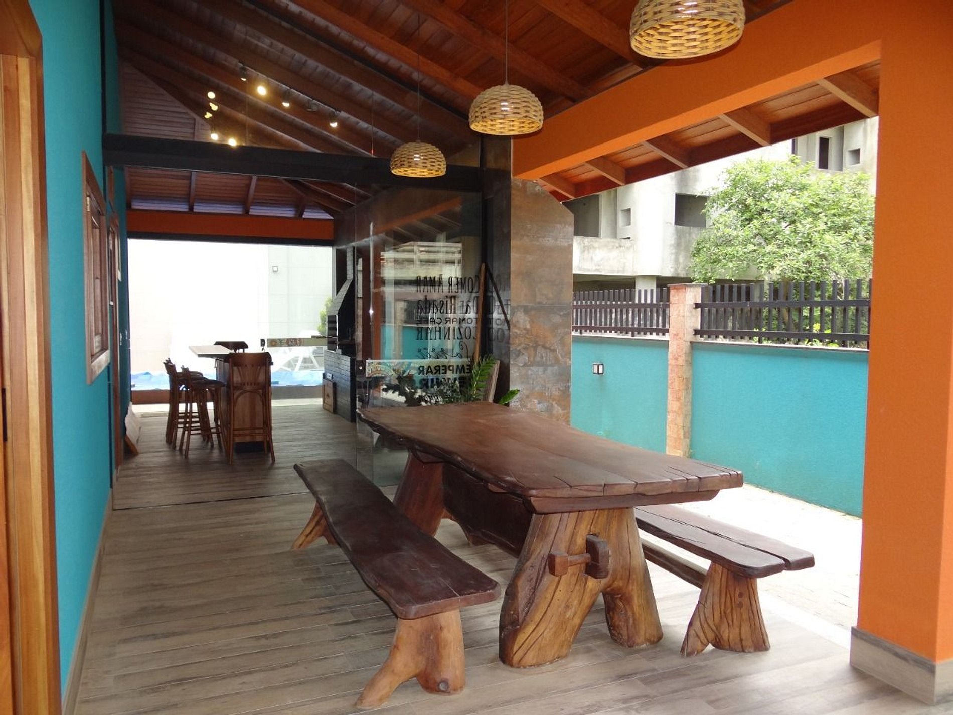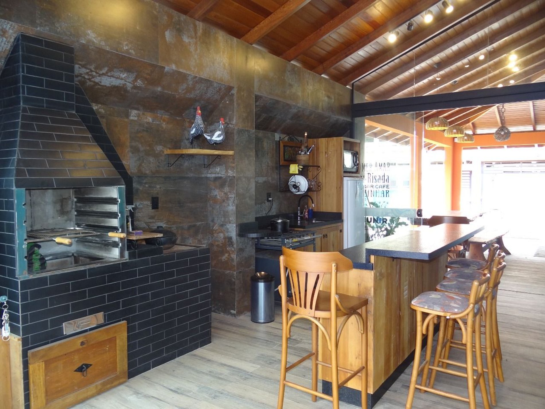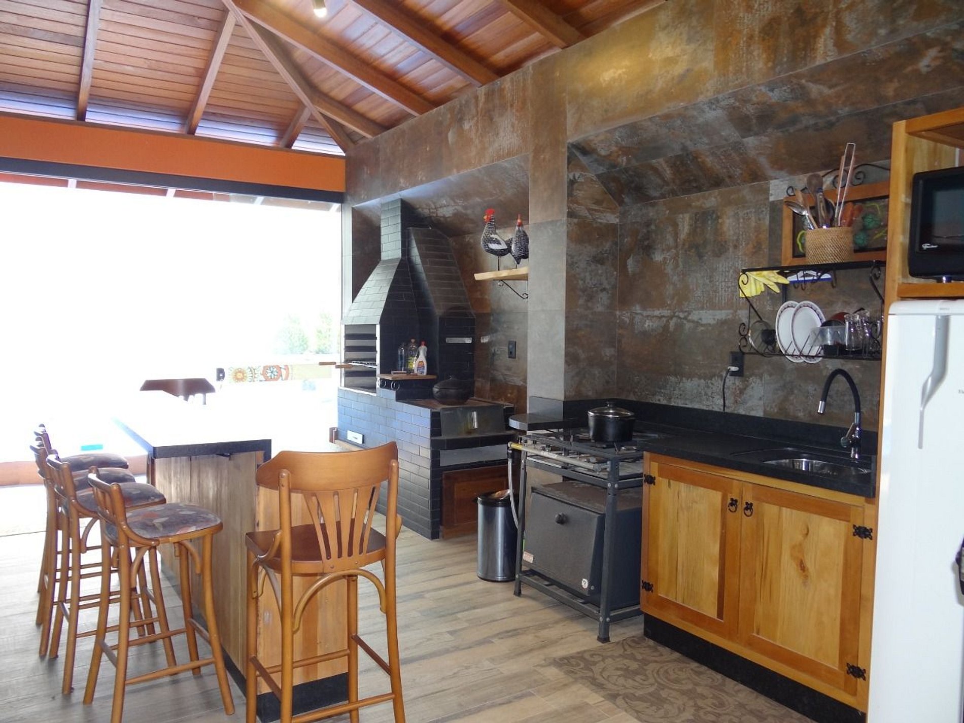 Área de churrasco com cozinha.