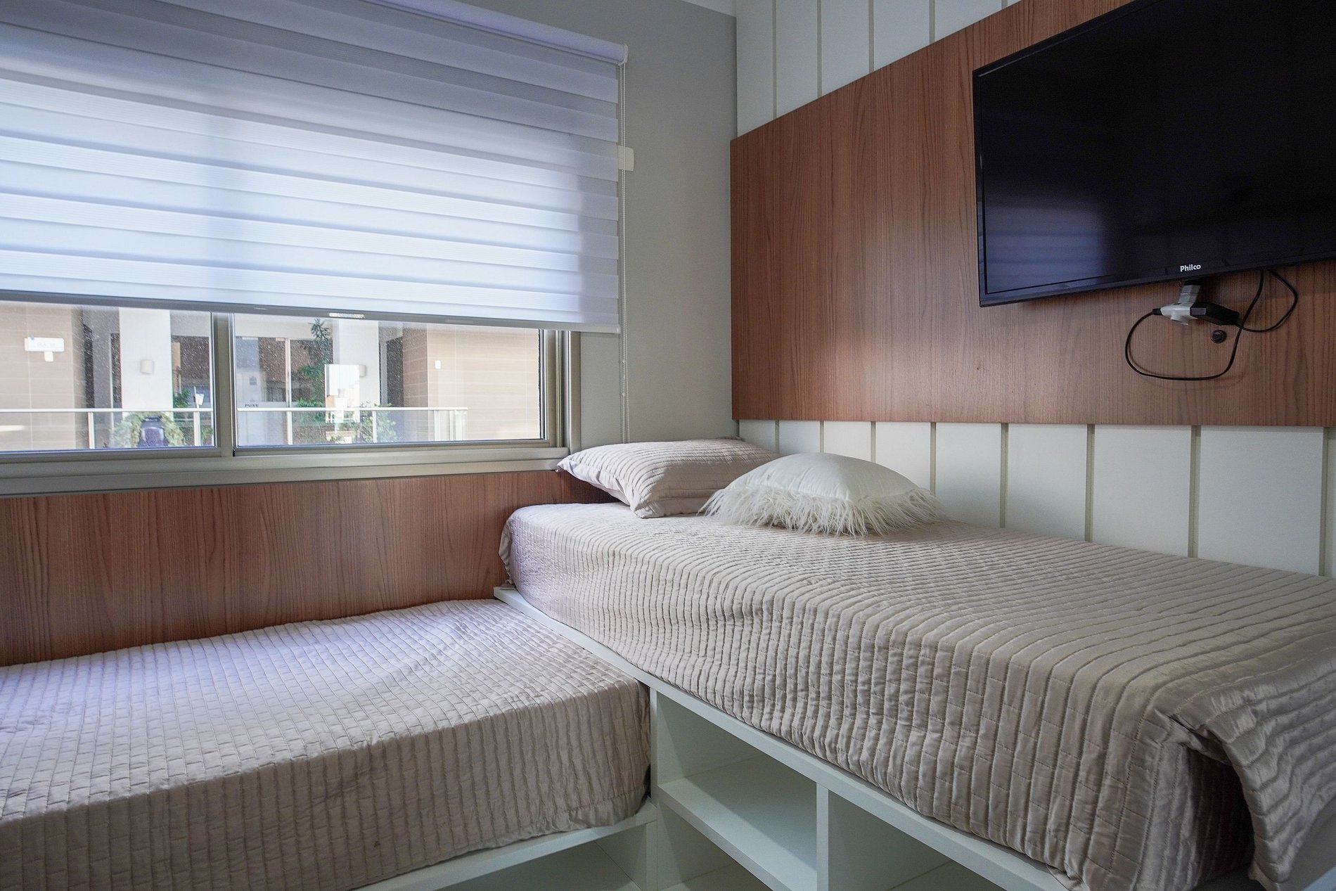 01 dormitório com 02 camas de solteiro
