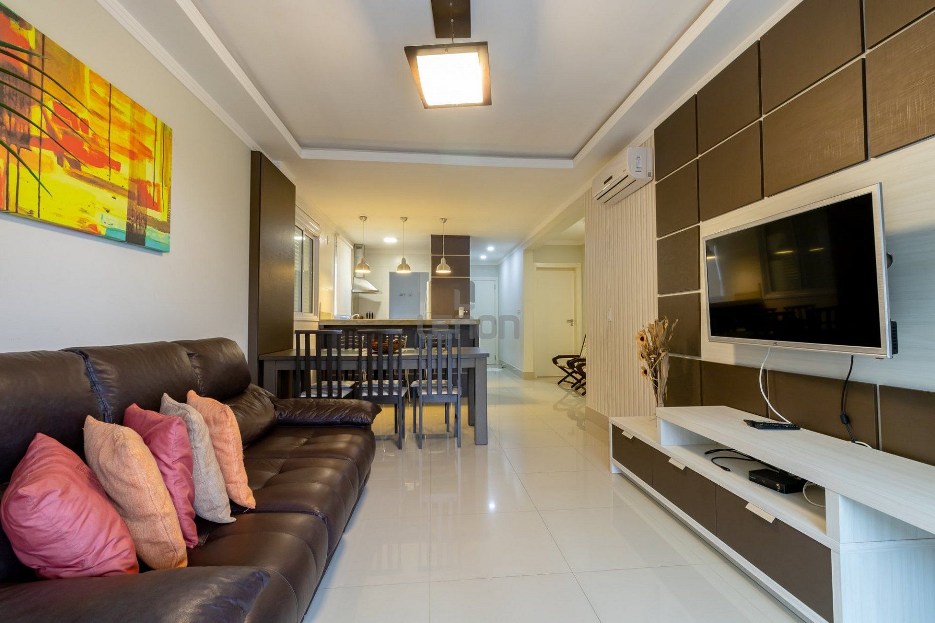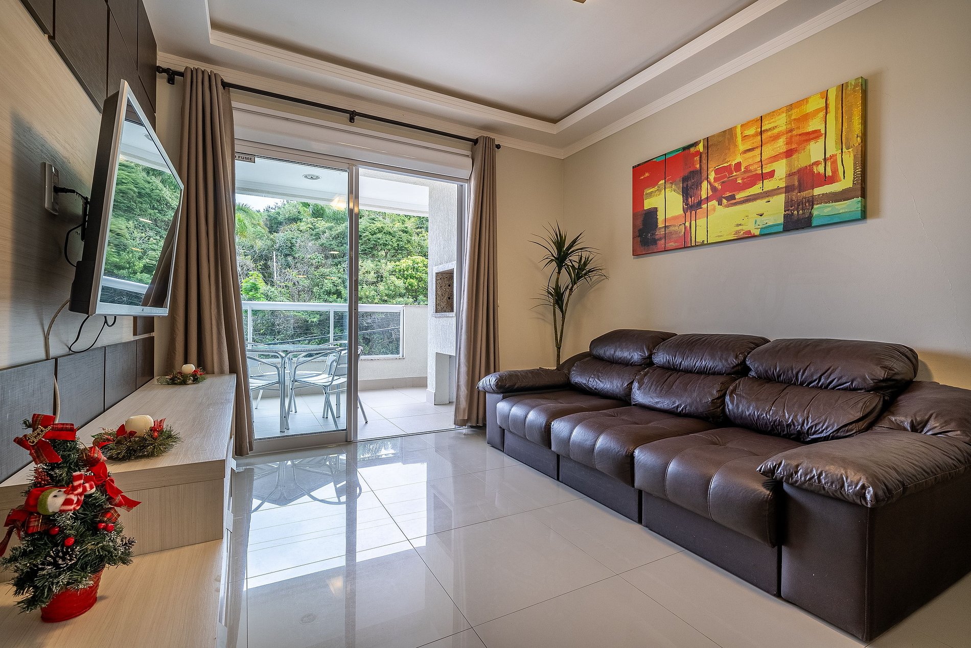 A apenas 100m da praia de 4 Ilhas, este apartamento completo é ideal para famílias que buscam conforto e lazer. São 3 dormitórios (1 suíte), todos com cama box e ambientes climatizados, além de banheiro social, sala com TV LCD e sofá, cozinha equipada, mesa para 5 pessoas e área de serviço com lavadora. A sacada com churrasqueira é perfeita para relaxar. O condomínio oferece piscina, Conta ainda com vaga estendida de garagem.