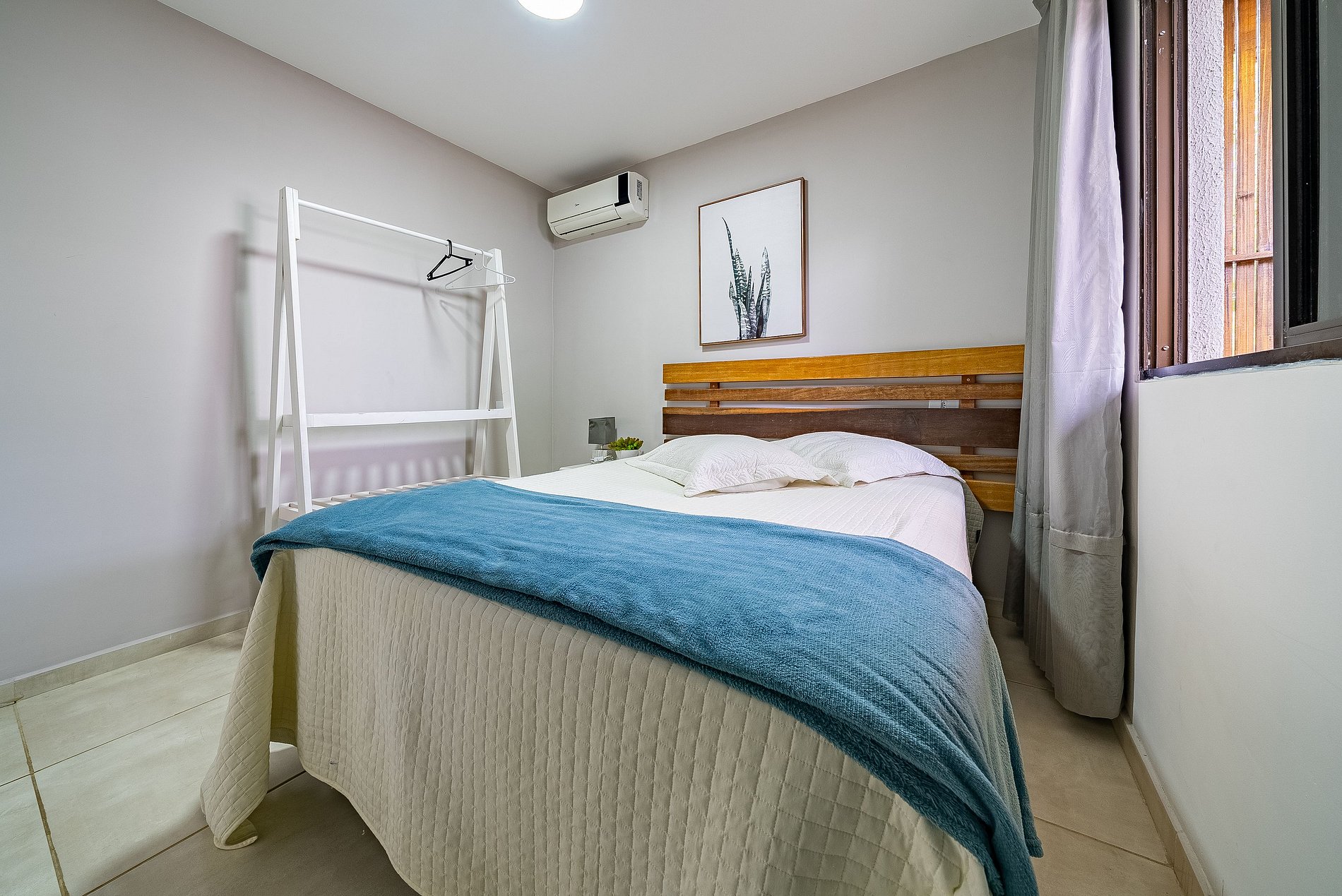 01 dormitório com cama box de casal e ar condicionado.