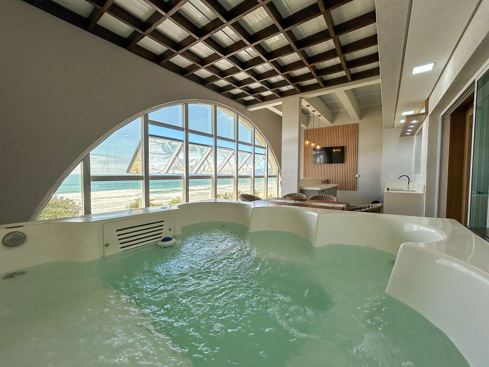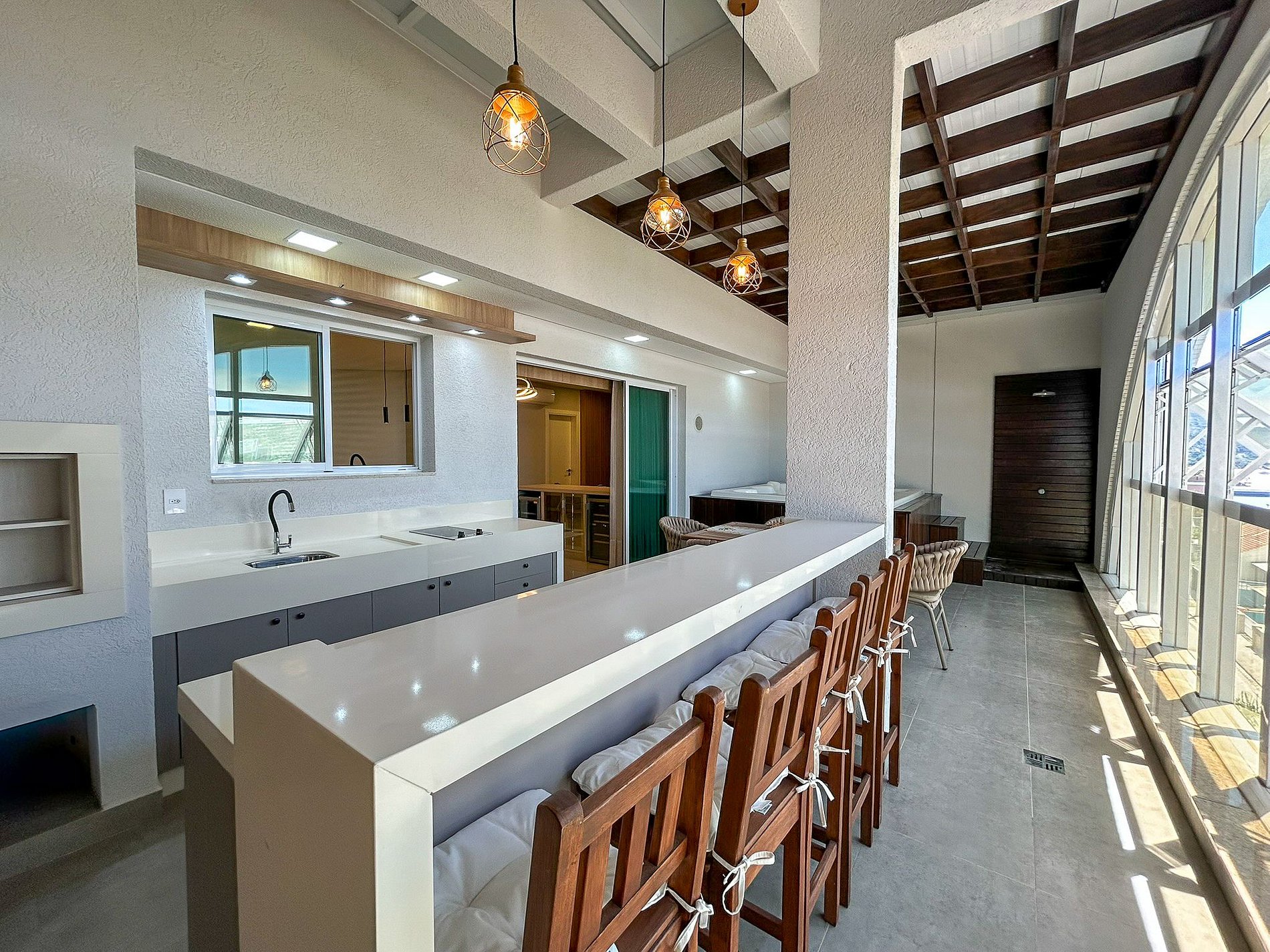 Área da churrasqueira integrada com Jacuzzi Aquecida