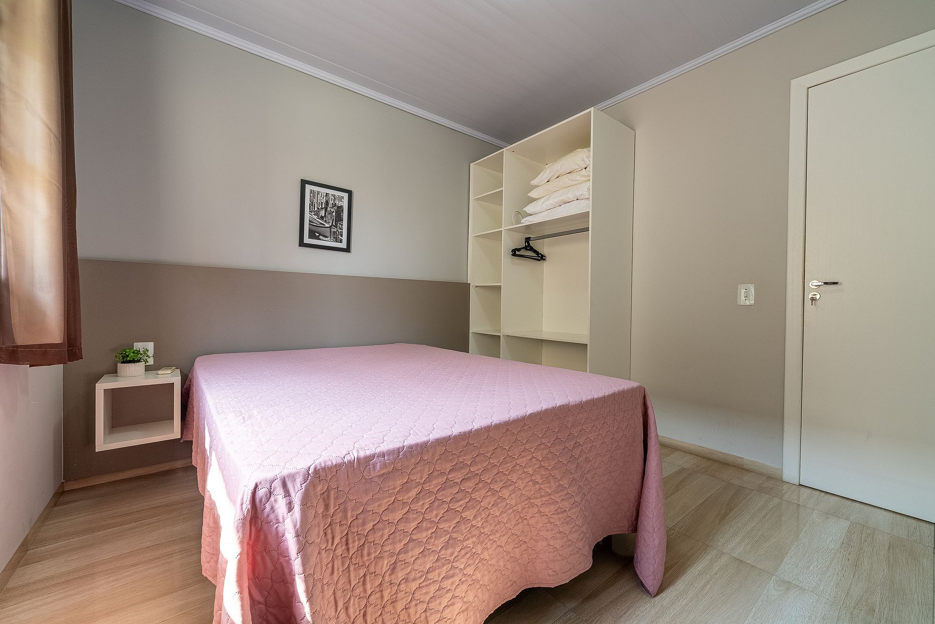 Apartamento com 01 Dormitório com cama de casal.