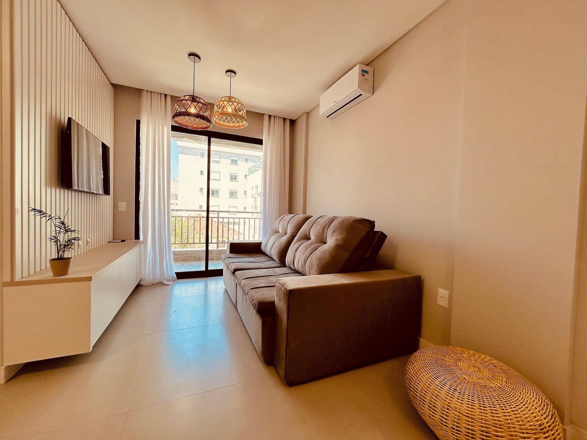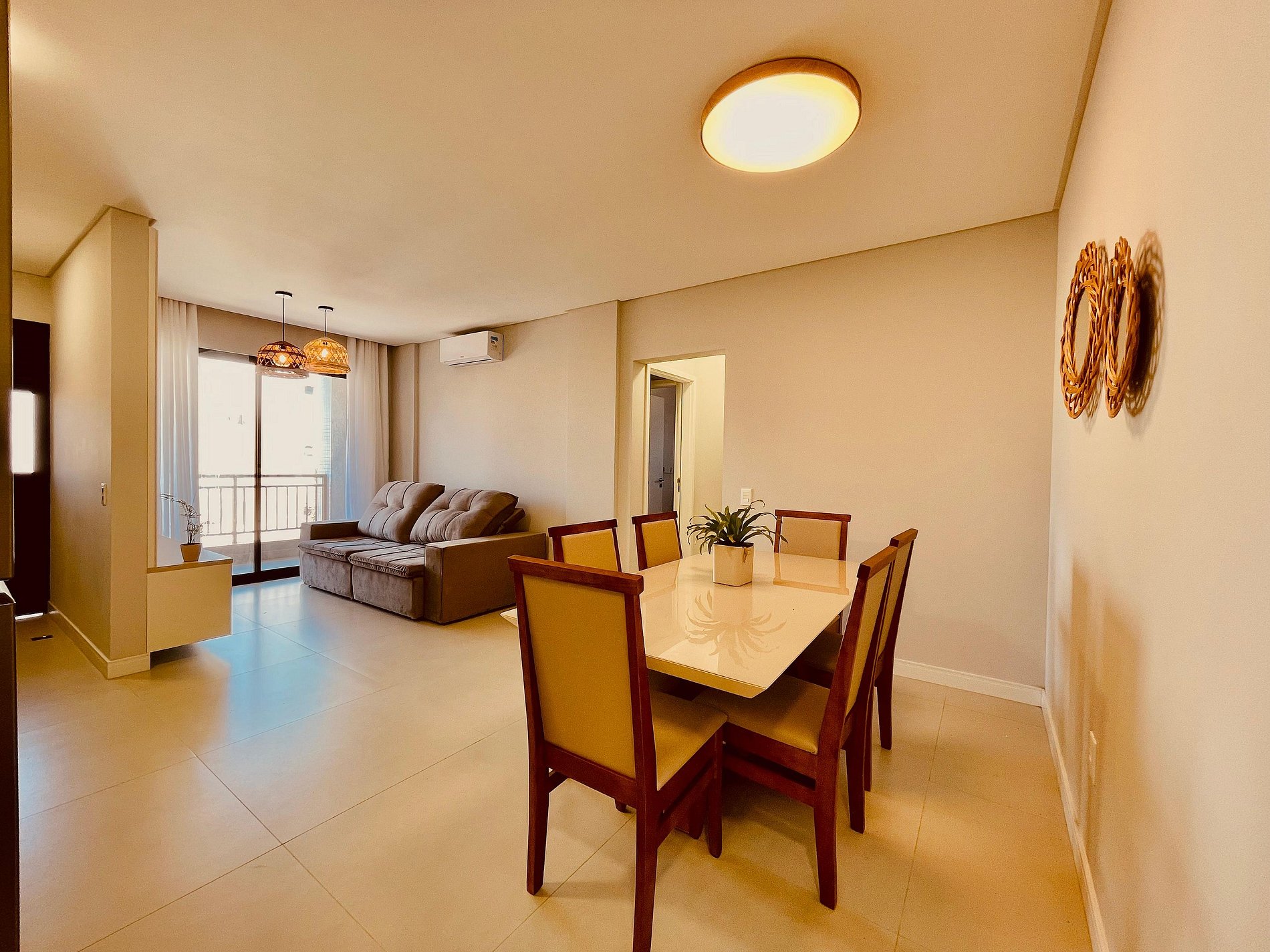 Sala de estar integrada com sala de jantar climatizada;