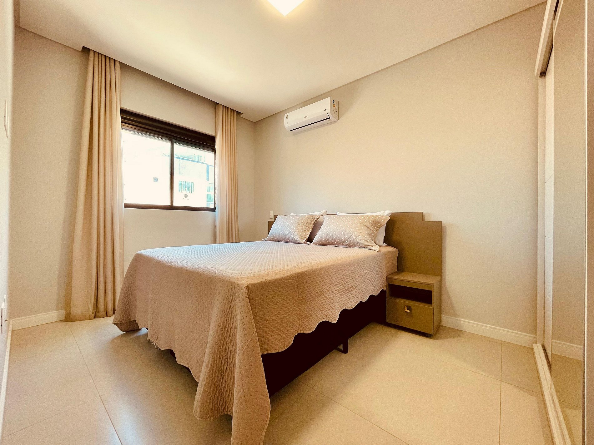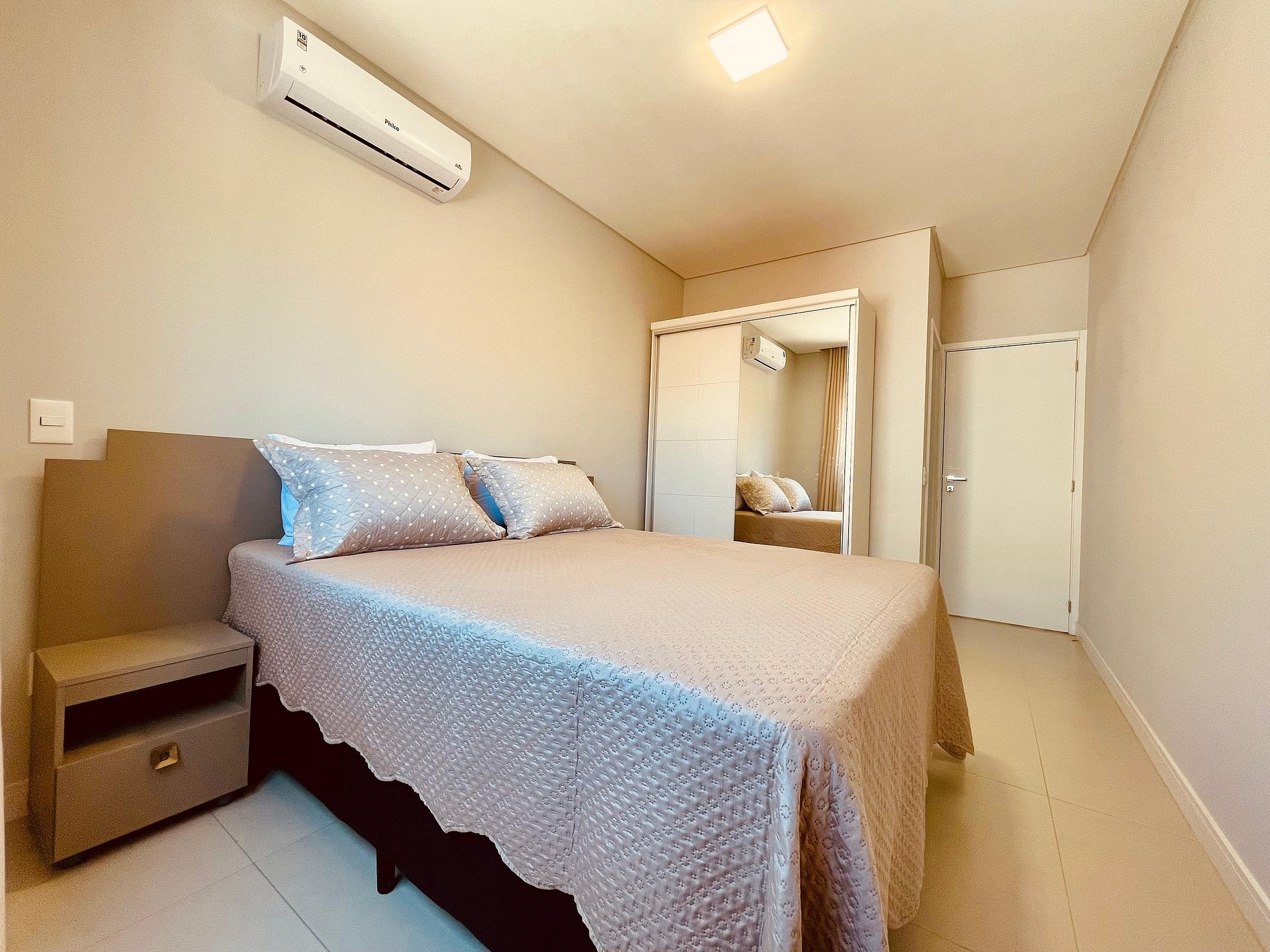1 suíte climatizada com cama de casal;