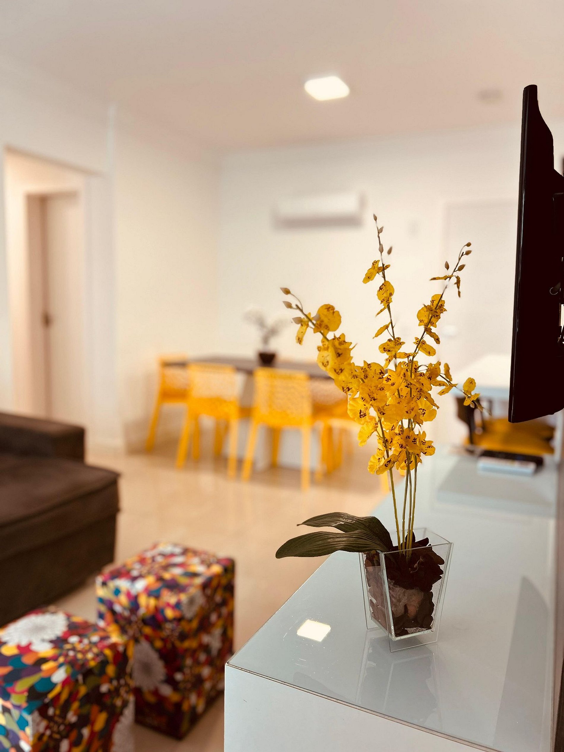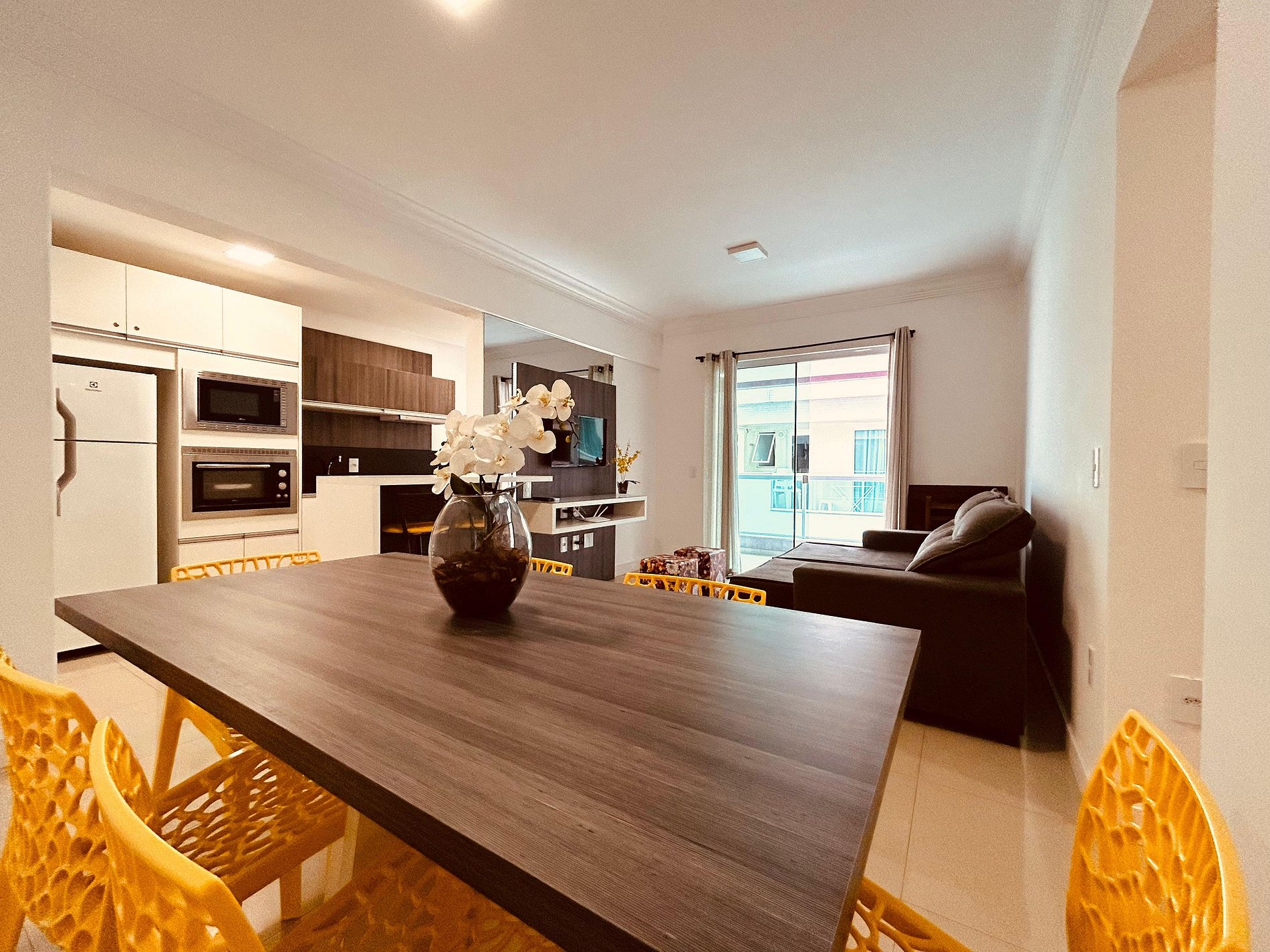 Sala de estar com televisão integrada com jantar climatizadas;