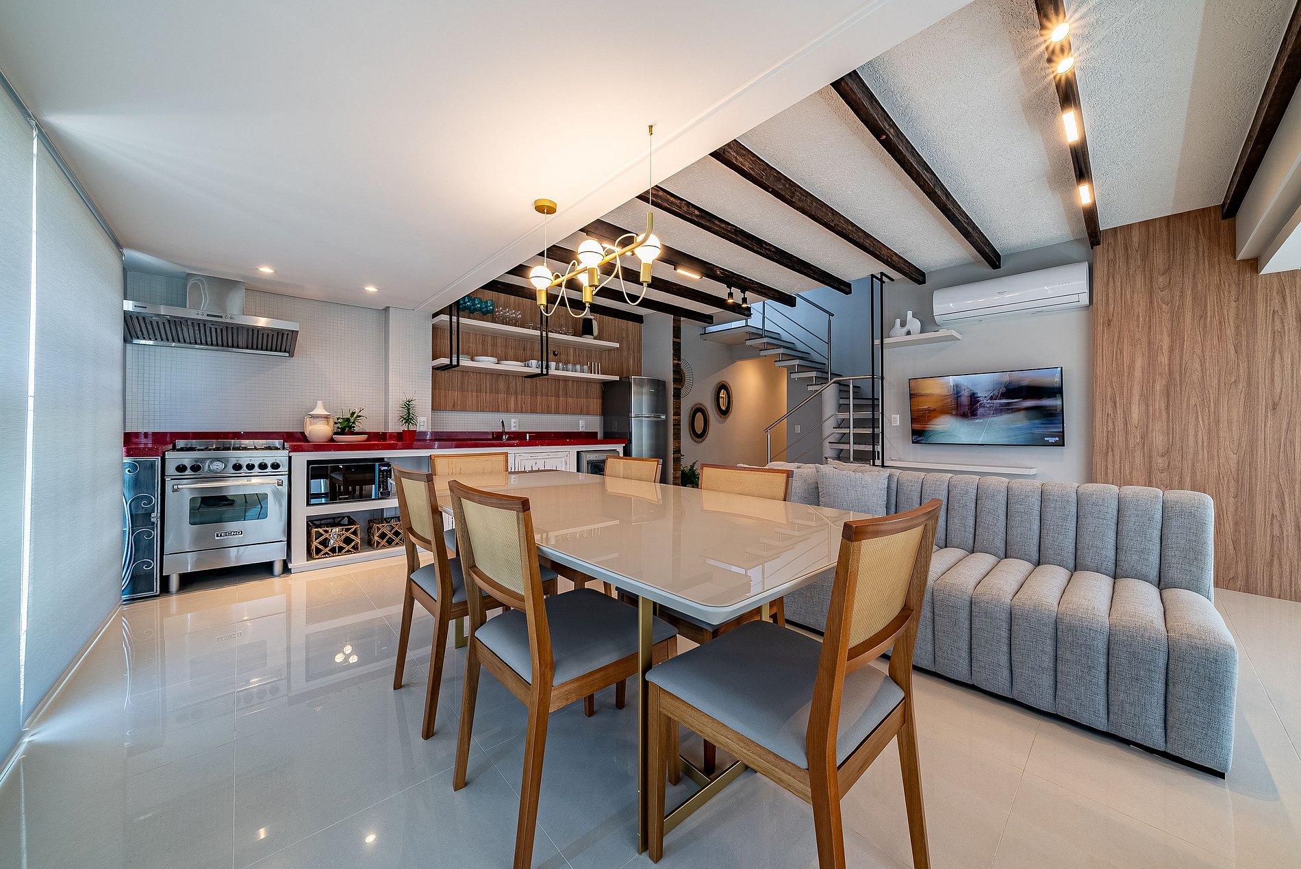 Desfrute de dias incríveis nesta cobertura em 4 Ilhas! No piso superior, cozinha completa com churrasqueira integrada, lavabo, suíte com cama de casal e sacada com jacuzzi privativa e vista para o mar. No piso inferior, cozinha e sala de estar aconchegante com Smart TV, lavanderia, 2 quartos com cama de casal e banheiro social. O imóvel oferece 2 vagas de garagem. Ideal para famílias que buscam conforto, lazer e localização privilegiada!