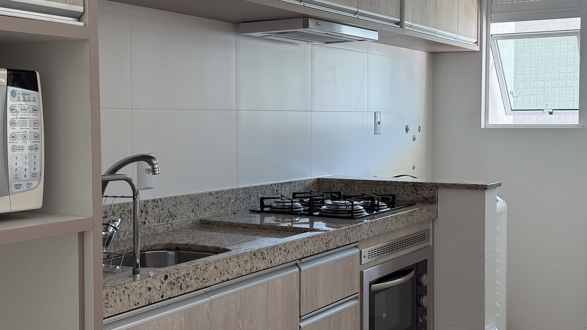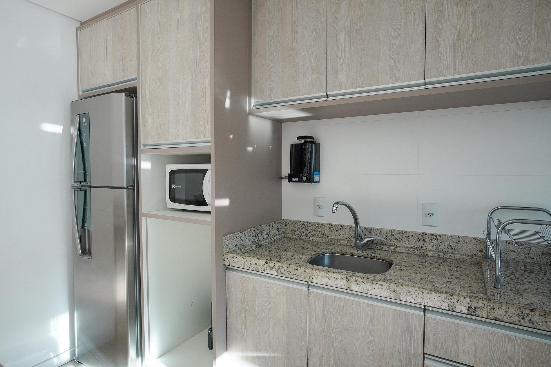 Cozinha completa com geladeira, micro-ondas, forno elétrico e churrasqueira;