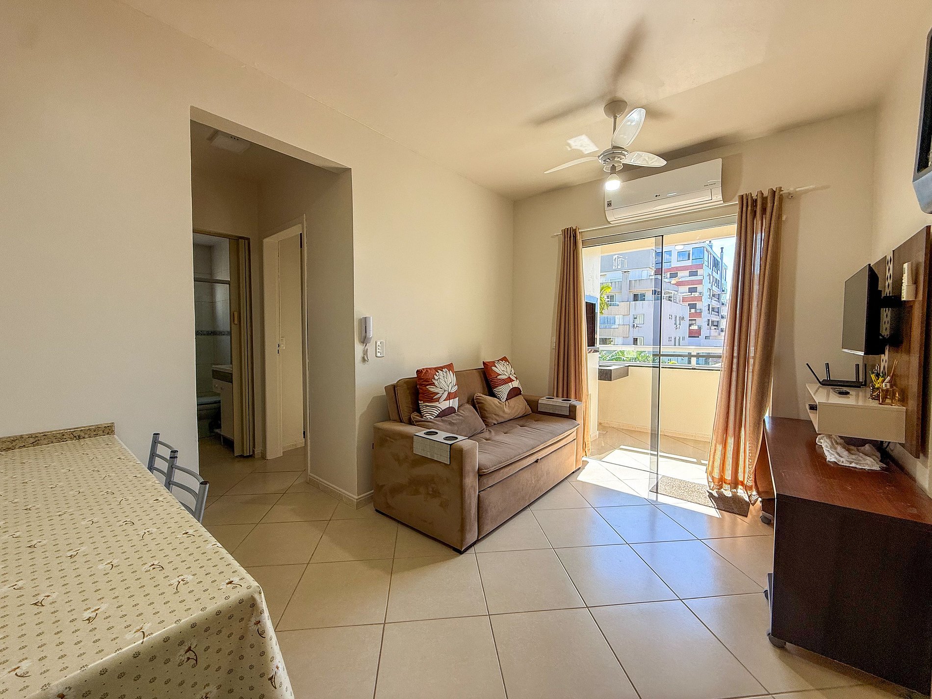 Charmoso apartamento com dois dormitórios, sendo uma suíte, localizado a apenas 320 metros da praia de Bombas. Possui sacada com churrasqueira, ideal para momentos de lazer, e está completamente mobiliado para oferecer conforto e praticidade durante sua estadia. Perfeito para aproveitar o melhor do verão em uma das praias mais belas de Santa Catarina.