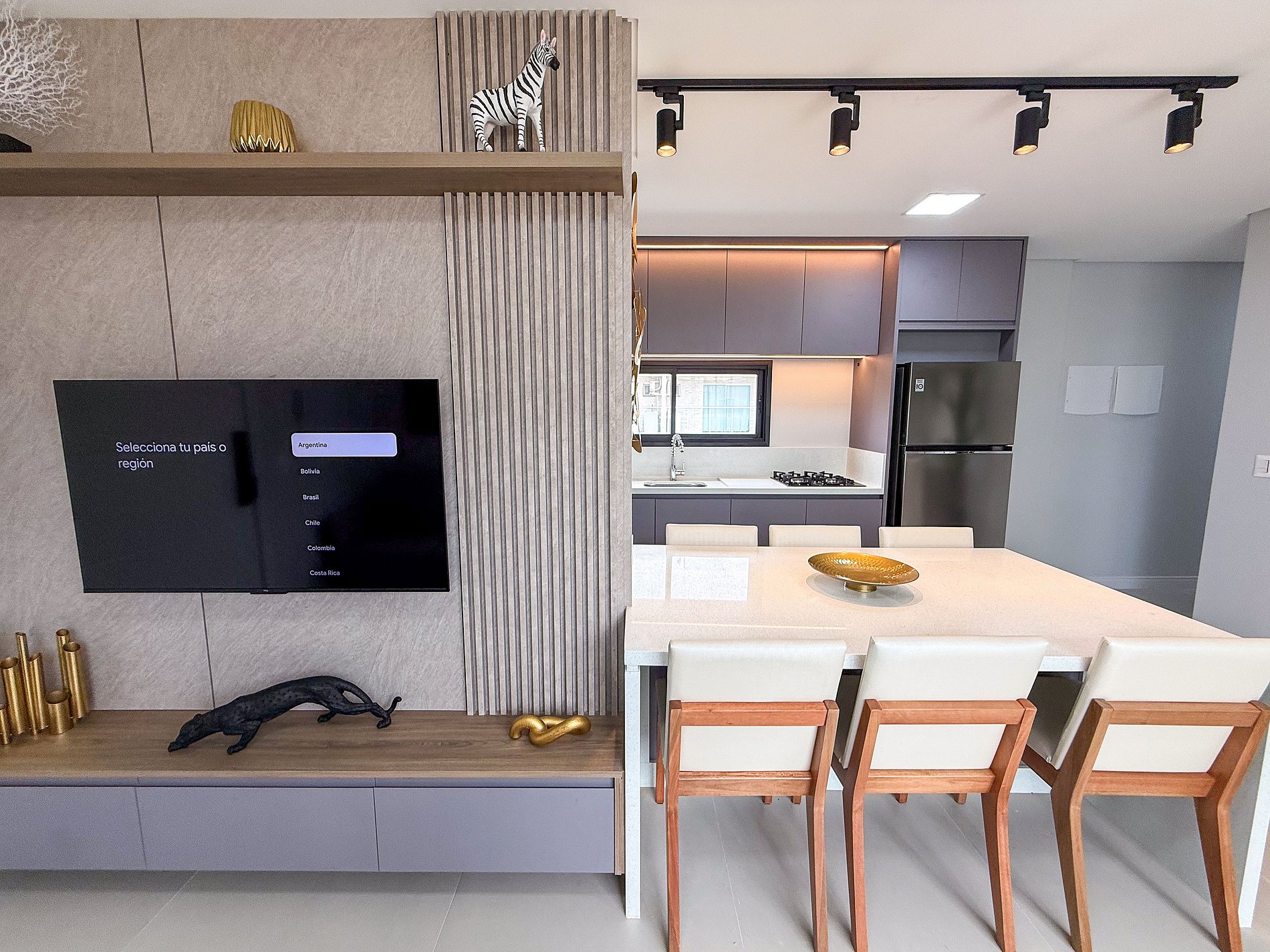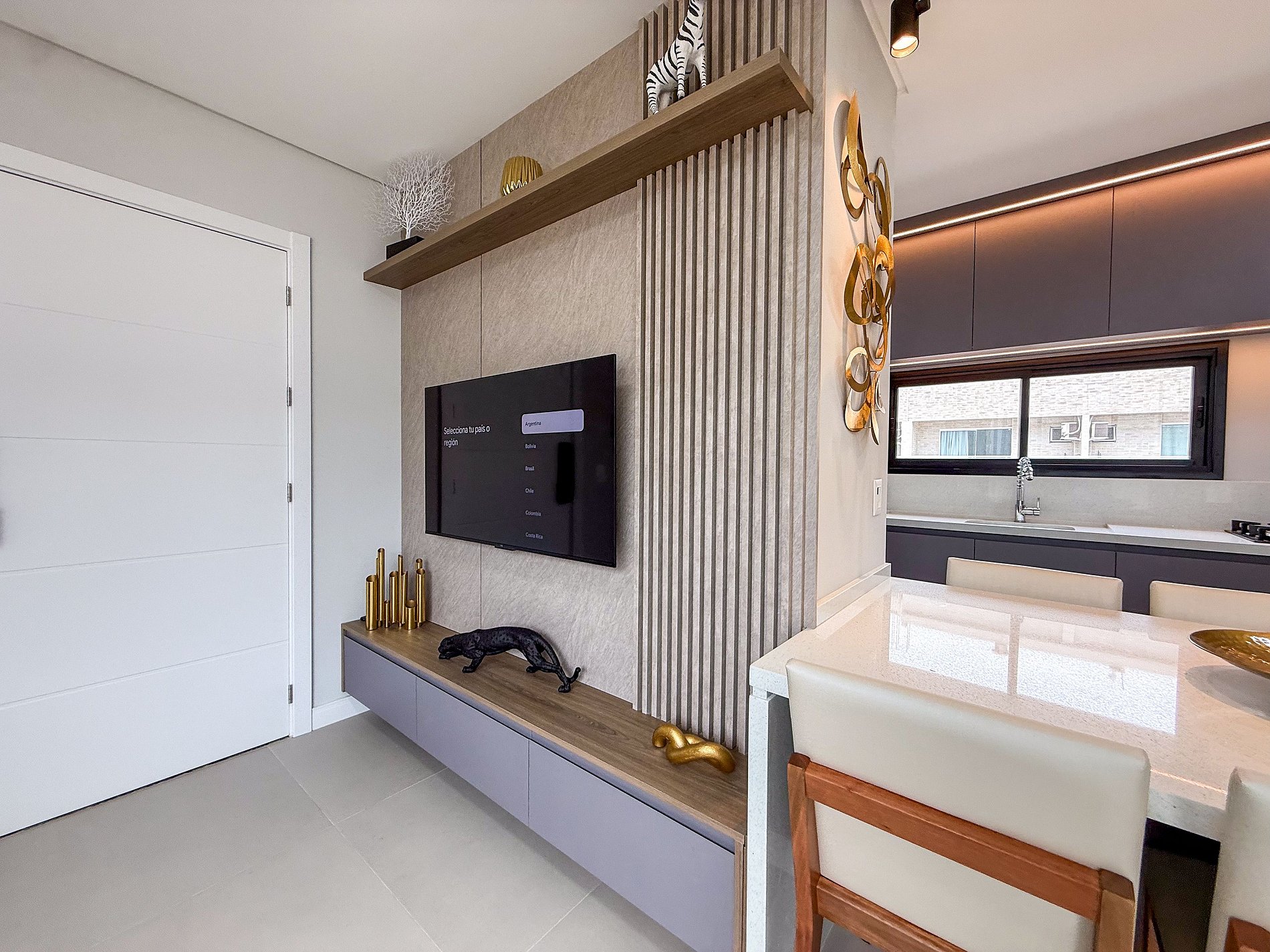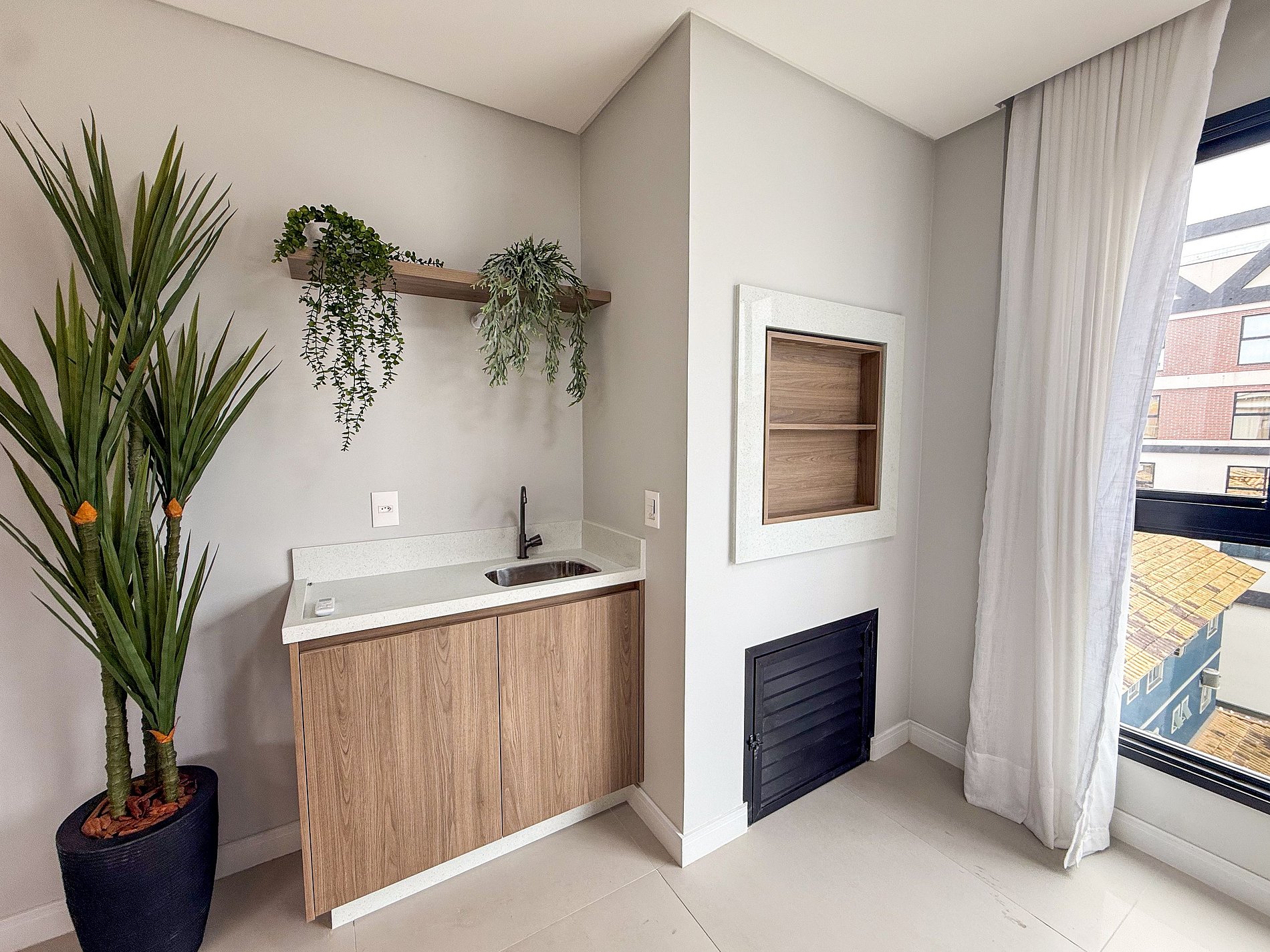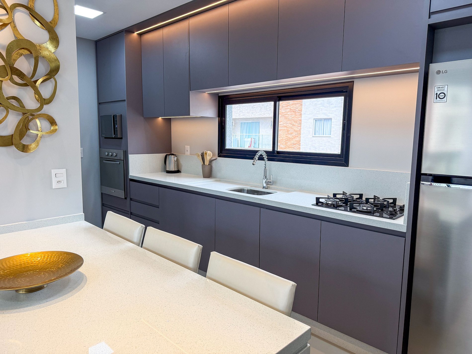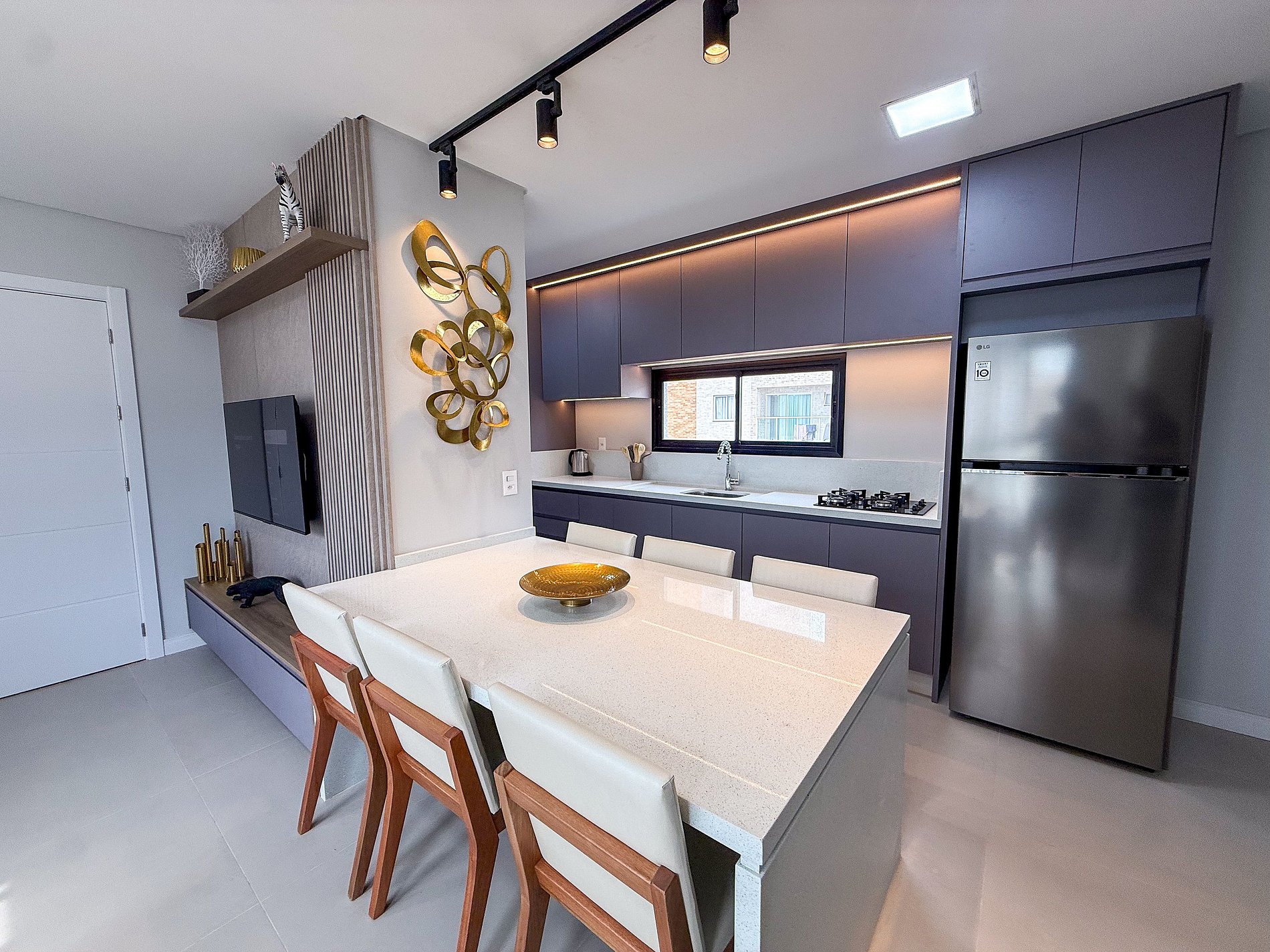 Apartamento lindo e bem decorado aproximadamente a 80m da Praia de Bombinhas Centro, ideal para quem busca conforto. São 03 suítes climatizadas, cozinha completa, com churrasqueira. Localização privilegiada, próximo a todo comércio.
