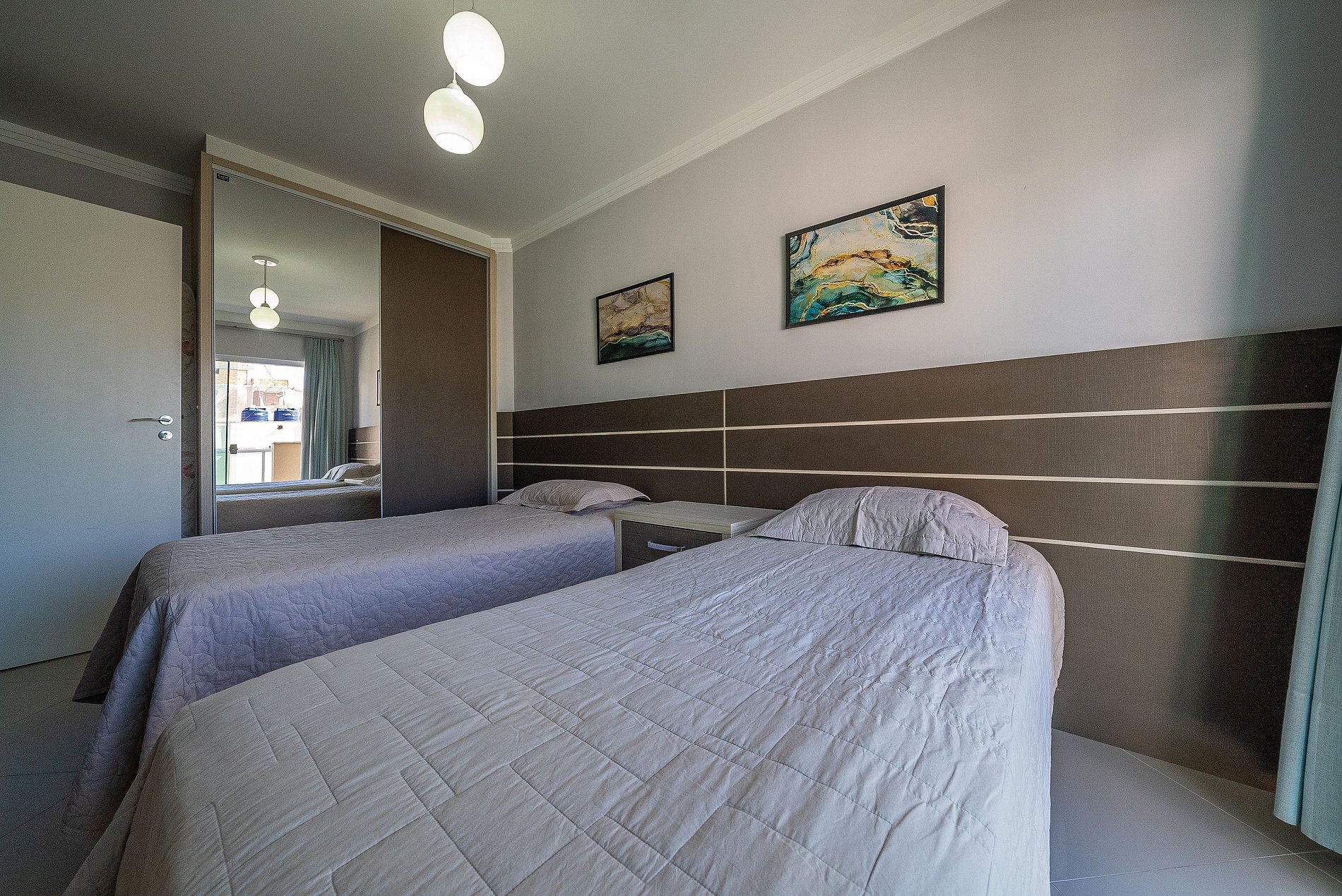 Desfrute de conforto e lazer a apenas 80m da Praia de Bombas! Cobertura com 2 suítes com cama box de casal, 1 dormitório com 2 camas de solteiro, banheiro social e lavabo. Sala de estar aconchegante, cozinha completa e área de serviço com máquina de lavar. O grande destaque é o terraço com churrasqueira e jacuzzi, ideal para relaxar após a praia. Com 2 vagas de garagem. Perfeito para famílias que buscam praticidade e bem-estar em Bombinhas.