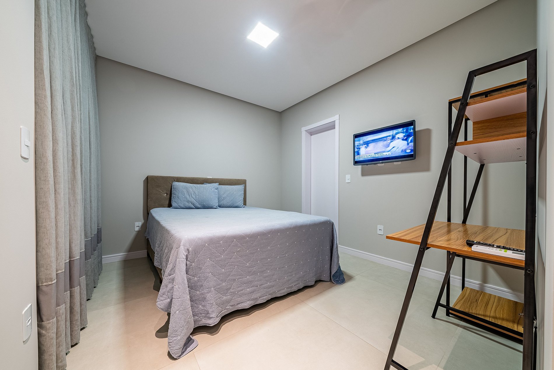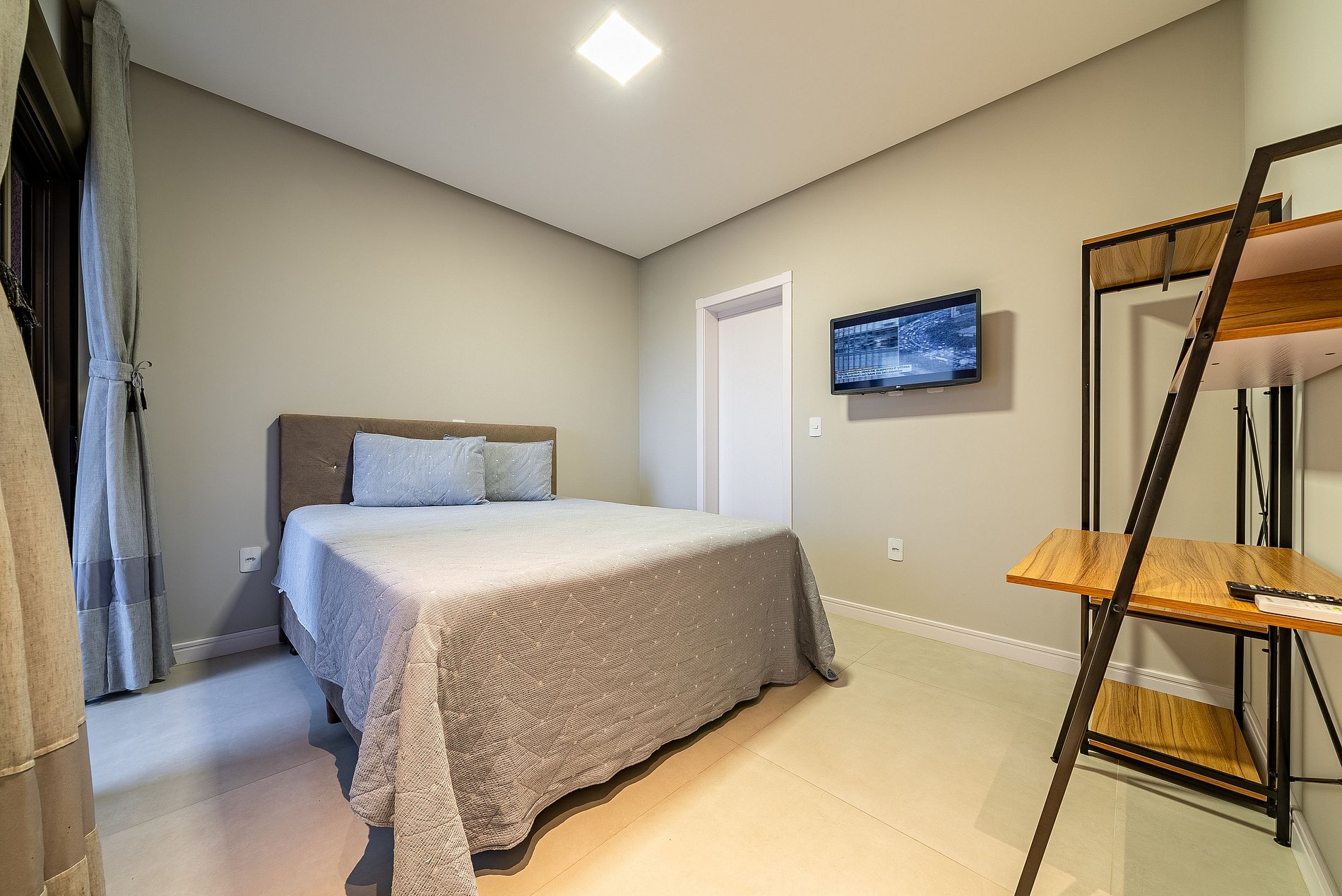 No piso inferior, são 3 suítes confortáveis (King, Queen e Casal).