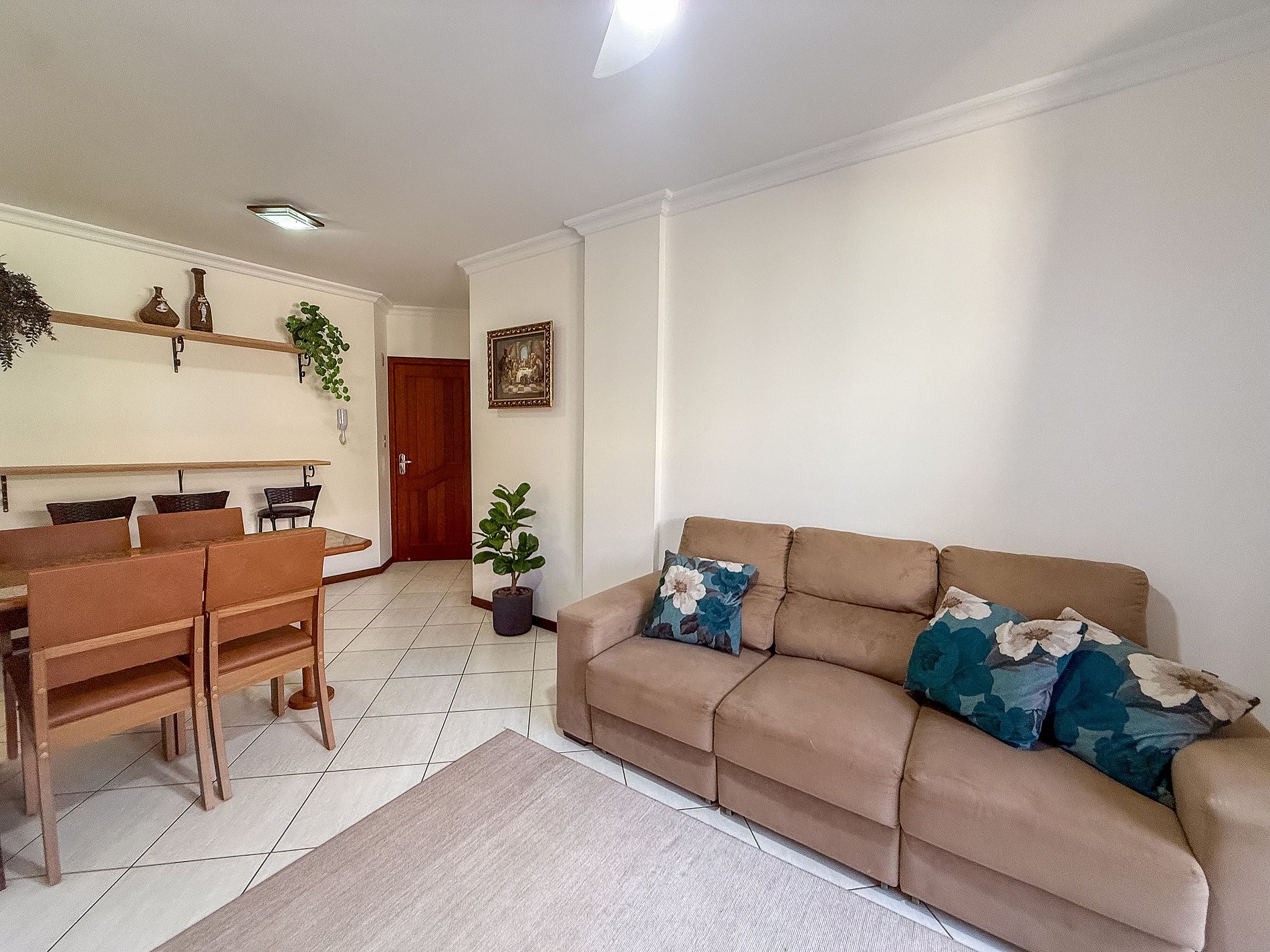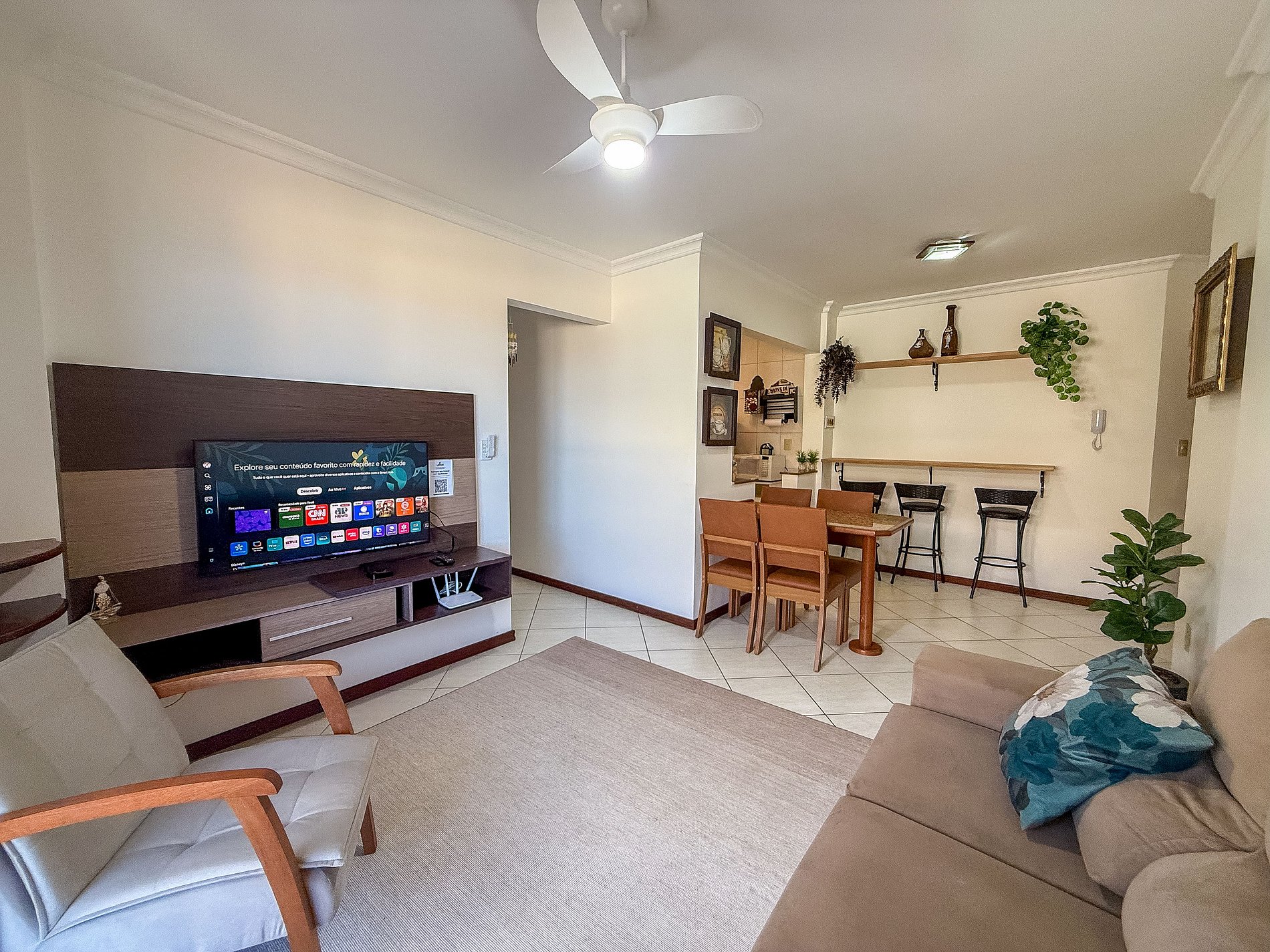 Conforto e localização a poucos passos da Praia de Bombas! Este apartamento oferece 1 suíte com cama box de casal e cama de solteiro com auxiliar, além de 1 dormitório com cama de casal — ambos com ar-condicionado. Conta com banheiro social, sala com sofá e TV, cozinha completa, mesa de jantar e sacada com churrasqueira. Inclui 1 vaga de garagem. Ideal para famílias que buscam praticidade à beira-mar. Não é permitido pets.