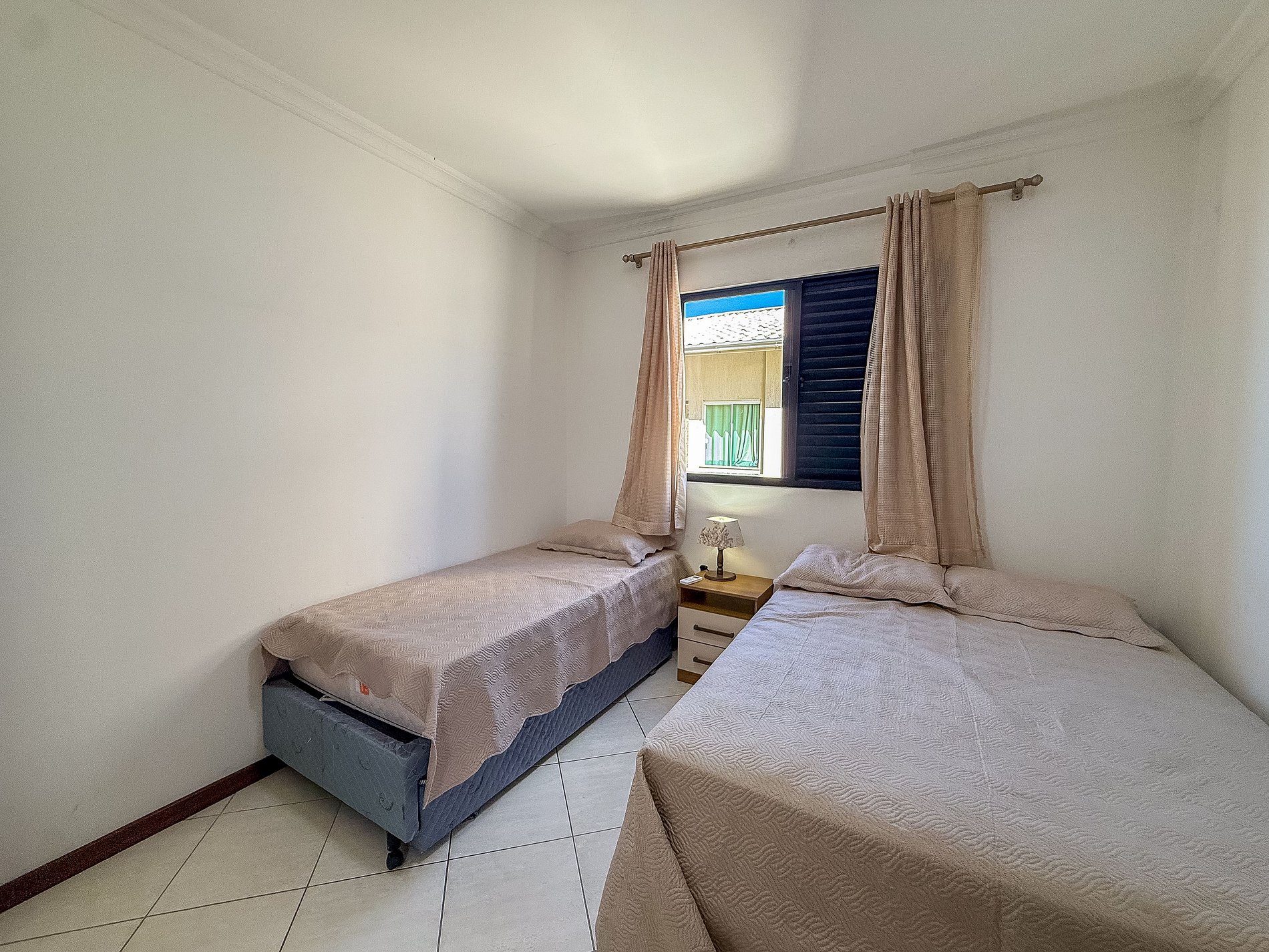 01 suíte com cama box de casal e 01 cama box de solteiro com auxiliar, com ar condicionado