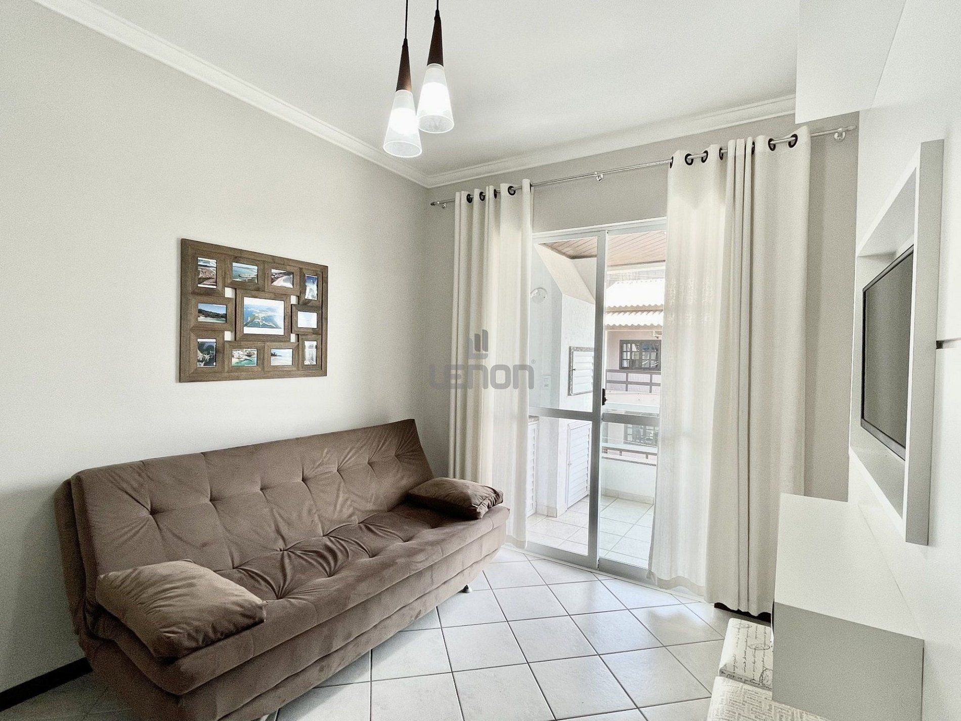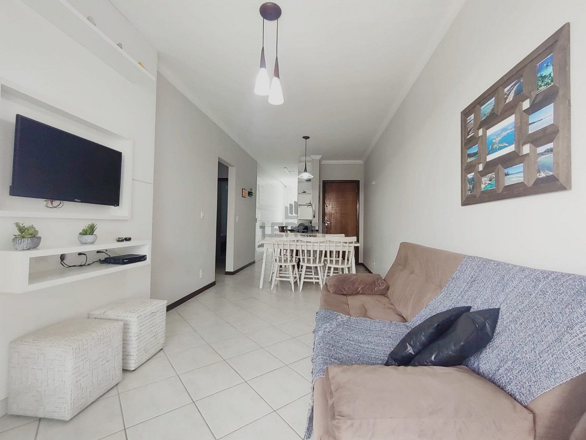 Sala de estar com sofás e TV