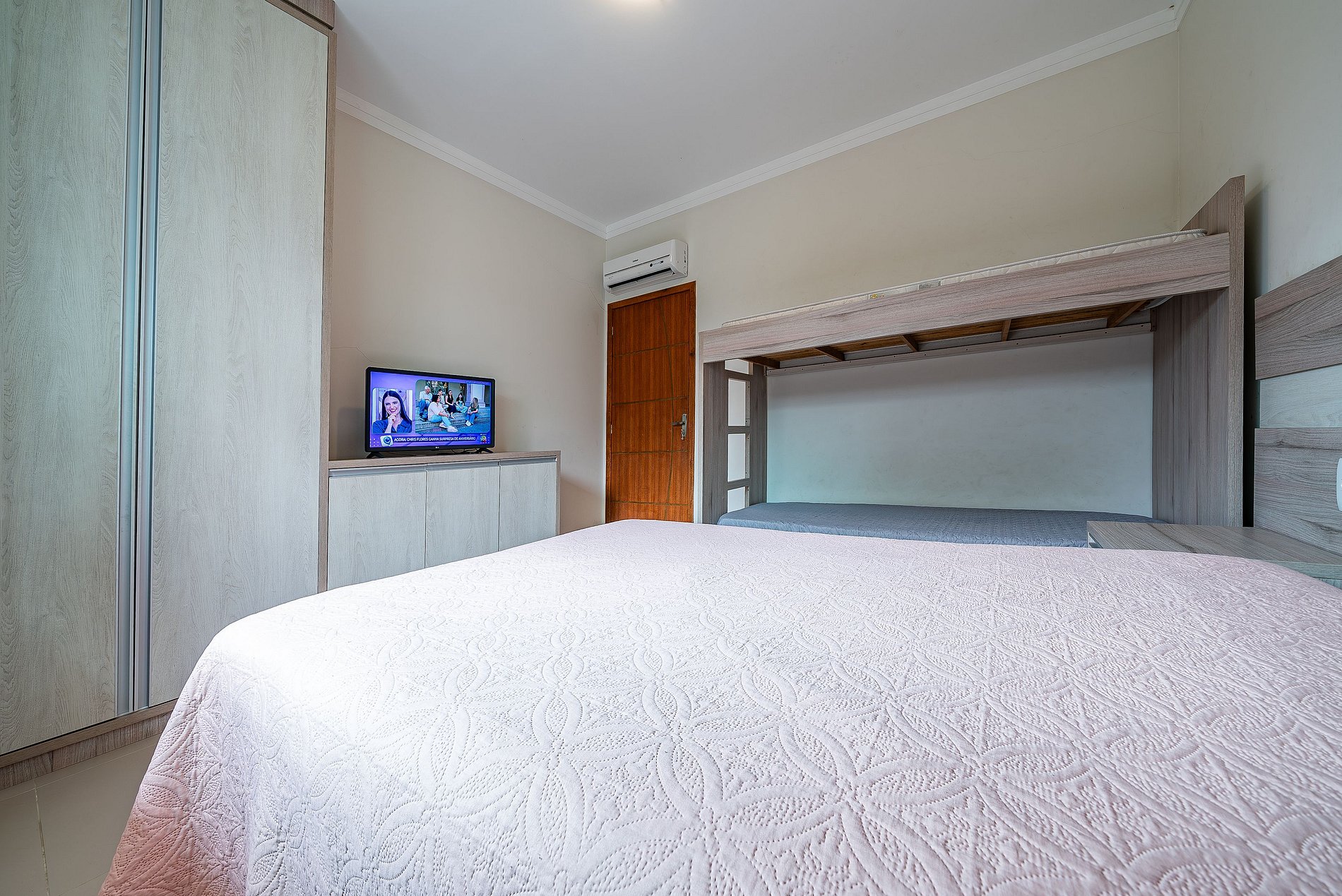 01 Dormitório com cama de casal e 1 beliche e ar condicionado;