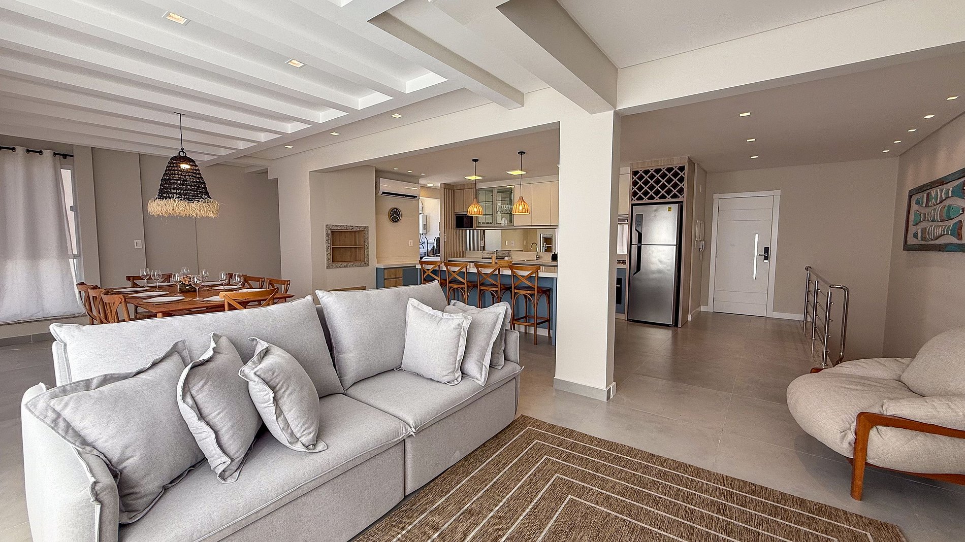 Dúplex aconchegante e decorado, a apenas 170m da Praia do Mariscal. Conta com 3 suítes climatizadas — duas com cama de casal e uma com duas camas de solteiro —, além de lavabo no piso superior. A cozinha é ampla e completa, integrada à sala de estar e jantar, com churrasqueira ideal para momentos em família. Possui vaga de garagem dupla em gaveta, comportando dois veículos hatch. Ideal para quem busca conforto, privacidade e localização privilegiada.