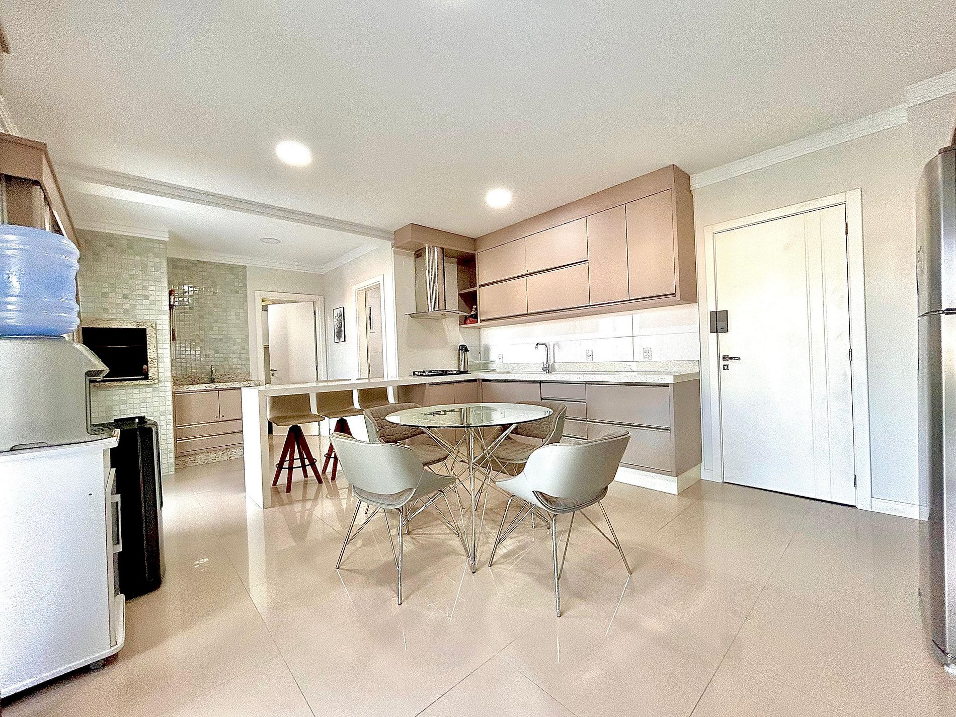 Cozinha completa com geladeira ,frigobar ,micro-ondas forno elétrico e churrasqueira ;