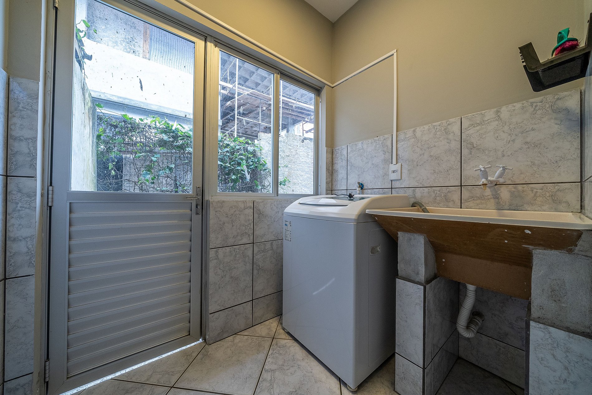Área de Serviço com Máquina de Lavar e Tanque