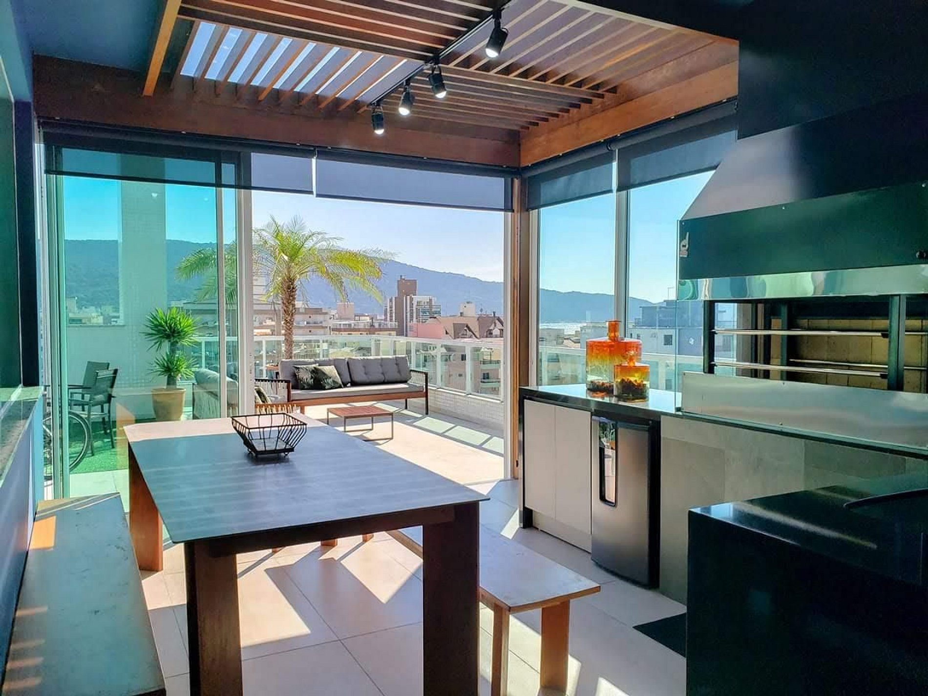 Apenas 100m da Praia de Bombas, esta cobertura oferece conforto e lazer. No piso superior, aproveite um amplo terraço com jacuzzi aquecida, espreguiçadeiras, sofás e churrasqueira gourmet. Sala de estar, jantar e cozinha totalmente equipada completam o ambiente. No piso inferior, são 4 suítes climatizadas 3 com cama de casal e 1 com cama de casal, cama de solteiro e auxiliar. Ideal para quem busca uma experiência especial em Bombinhas!