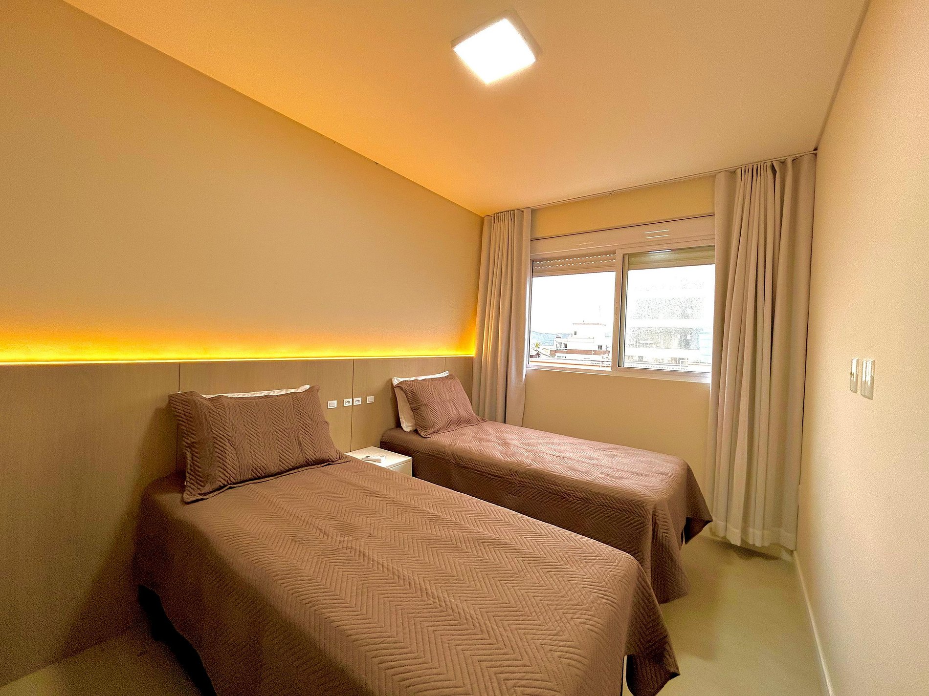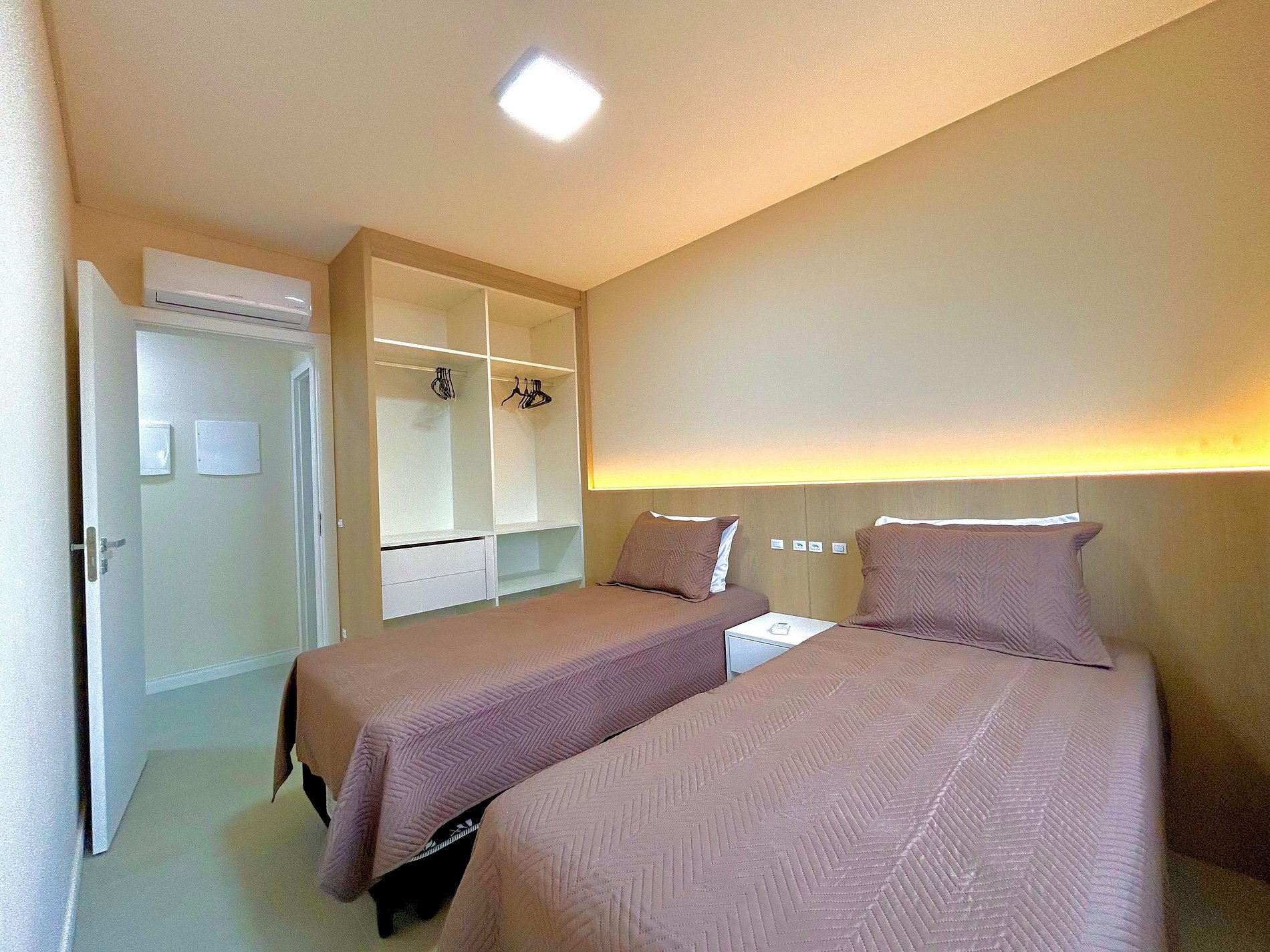01 dormitório com 2 camas de solteiro, com ar condicionado.