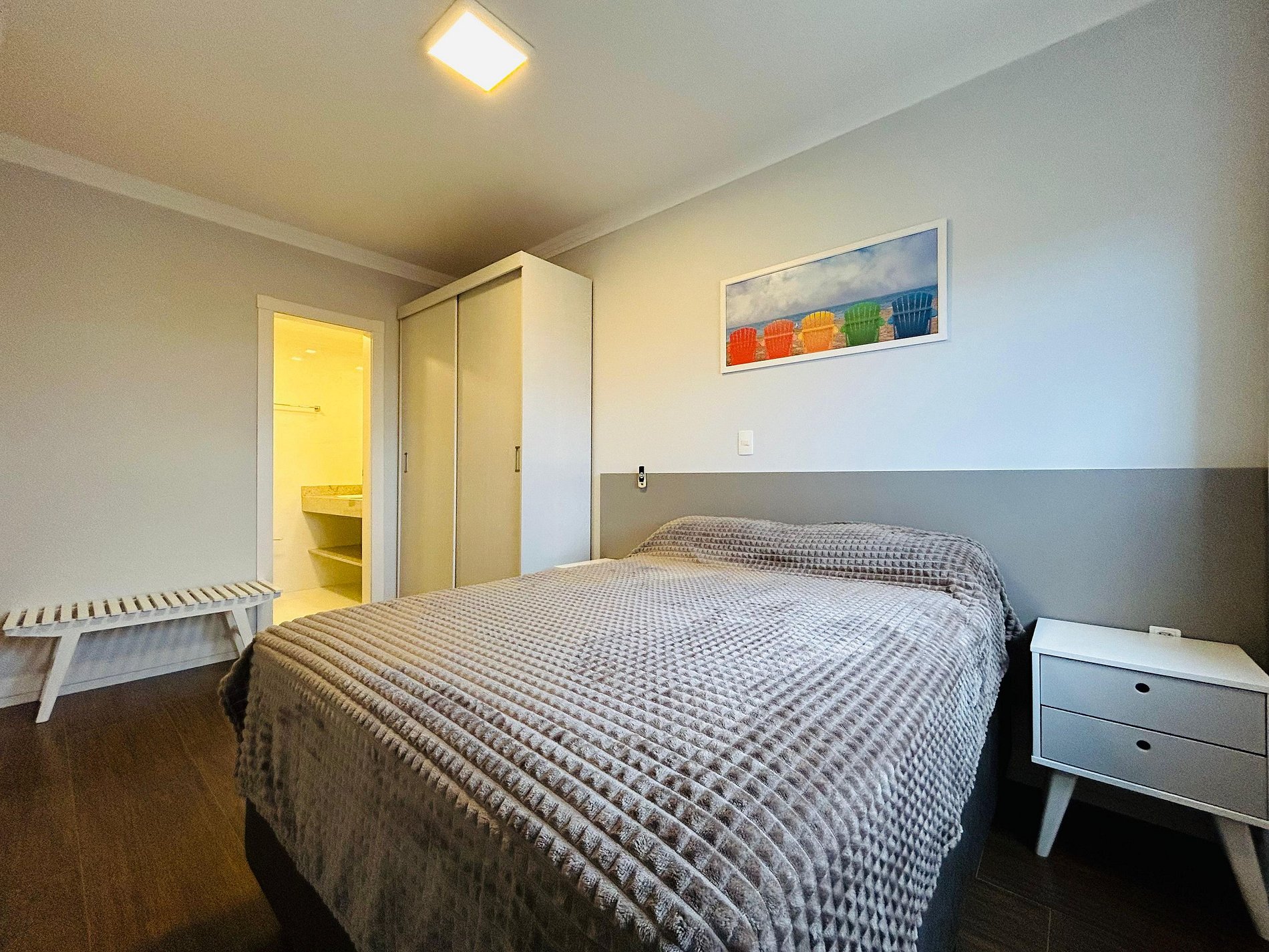 1 suíte climatizada e com uma cama de casal;