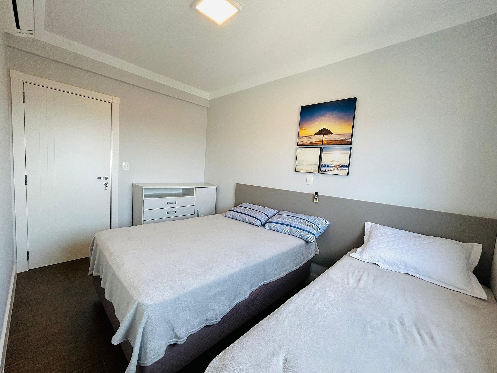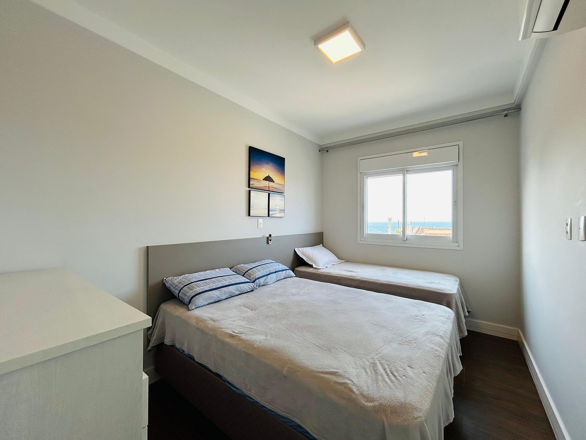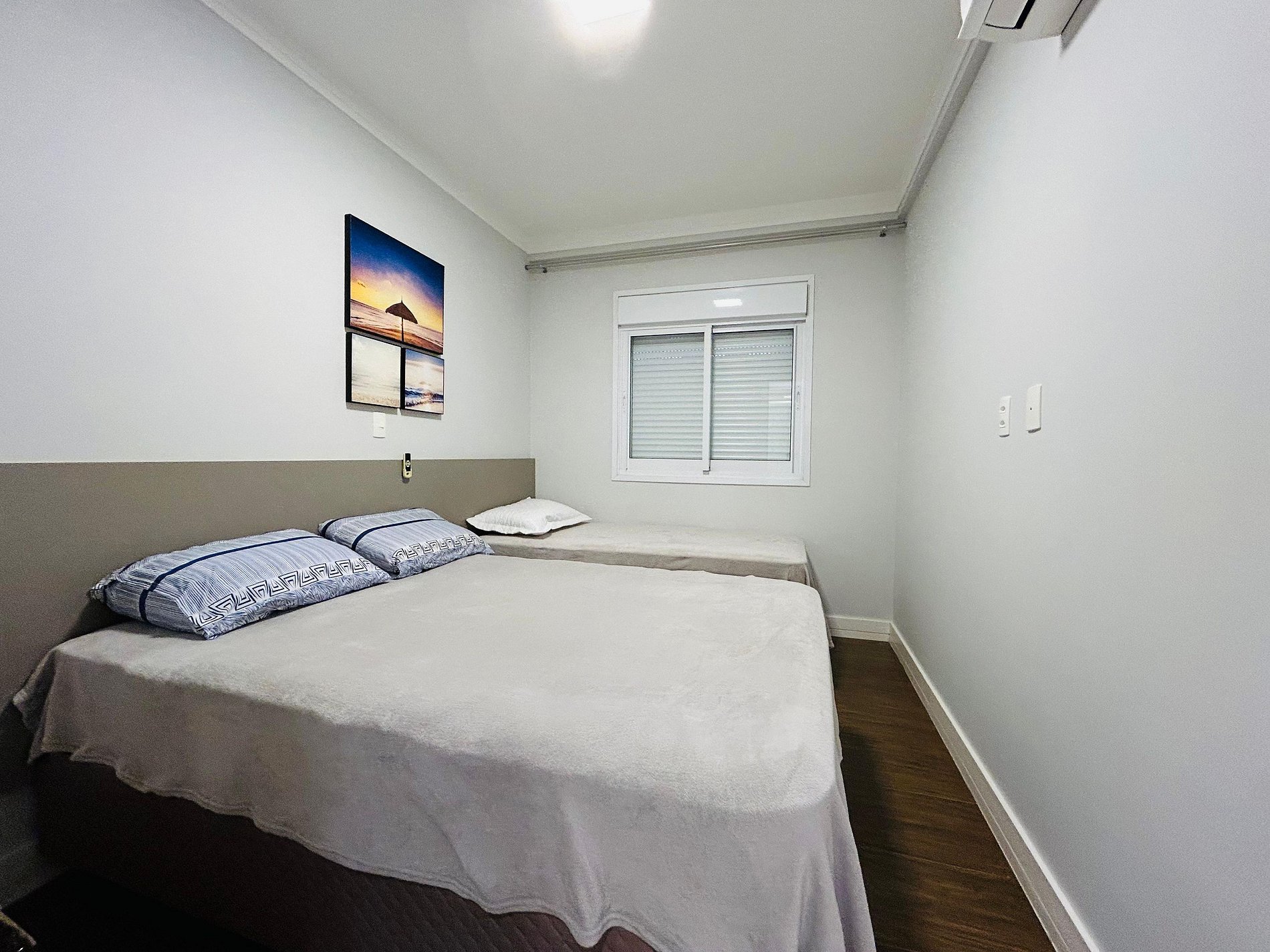 1 dormitório com cama de casal e uma de solteiro
