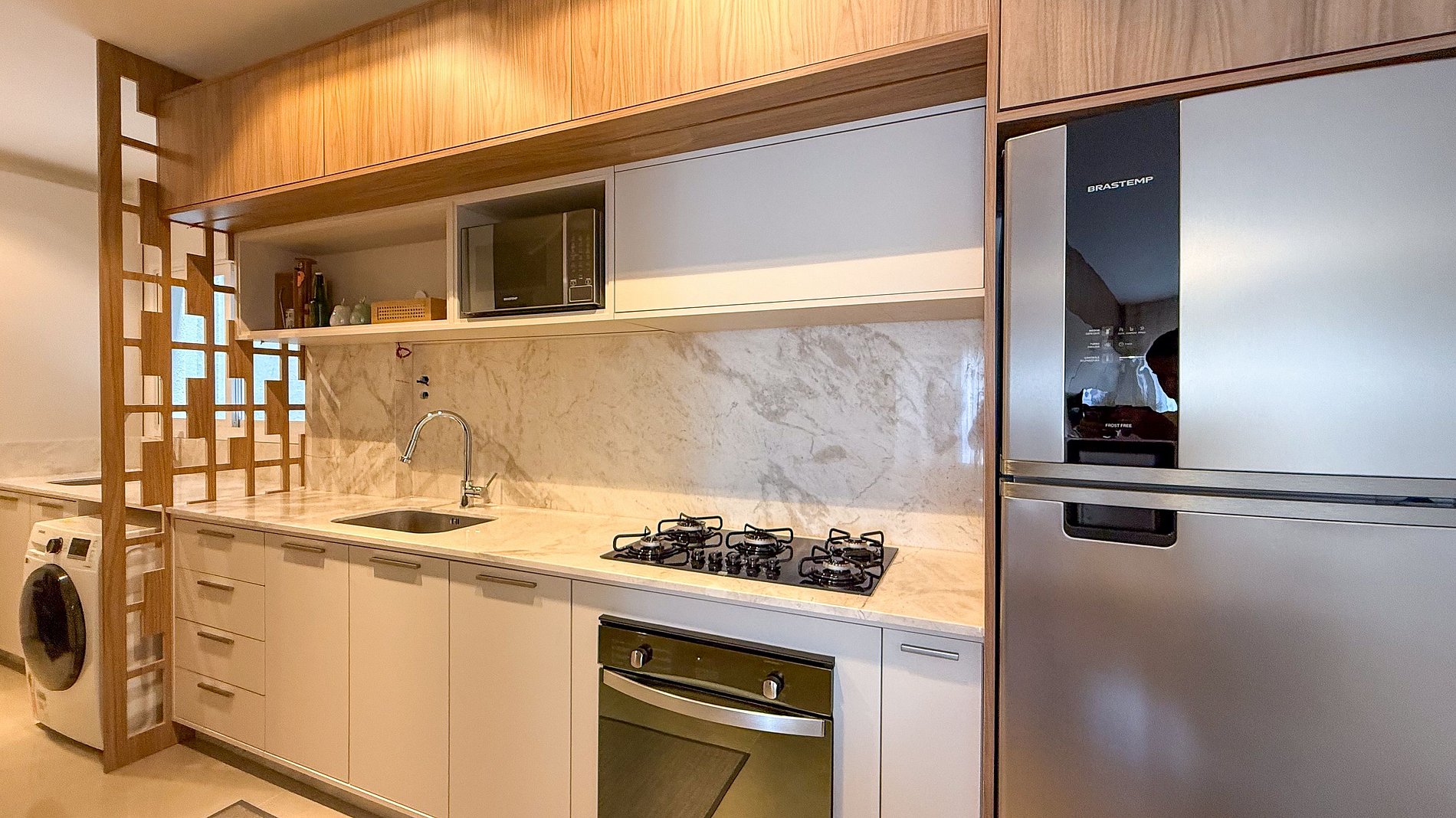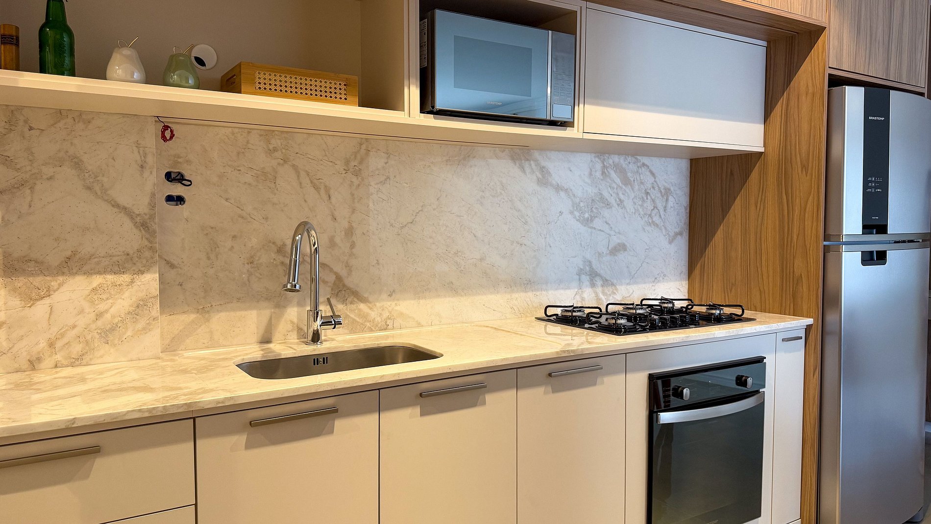 1 Cozinha prática integrada com sala de estar;
