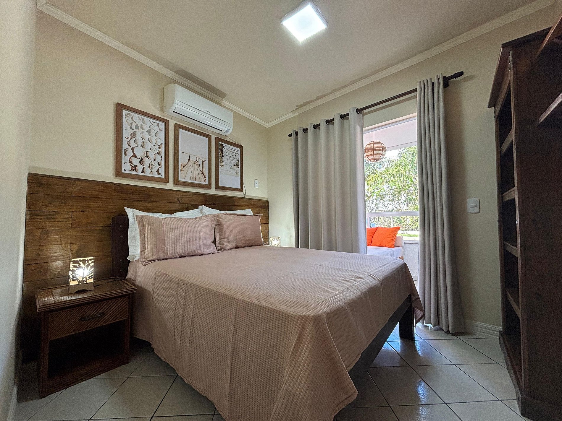 01 dormitório com cama de casal e ar condicionado