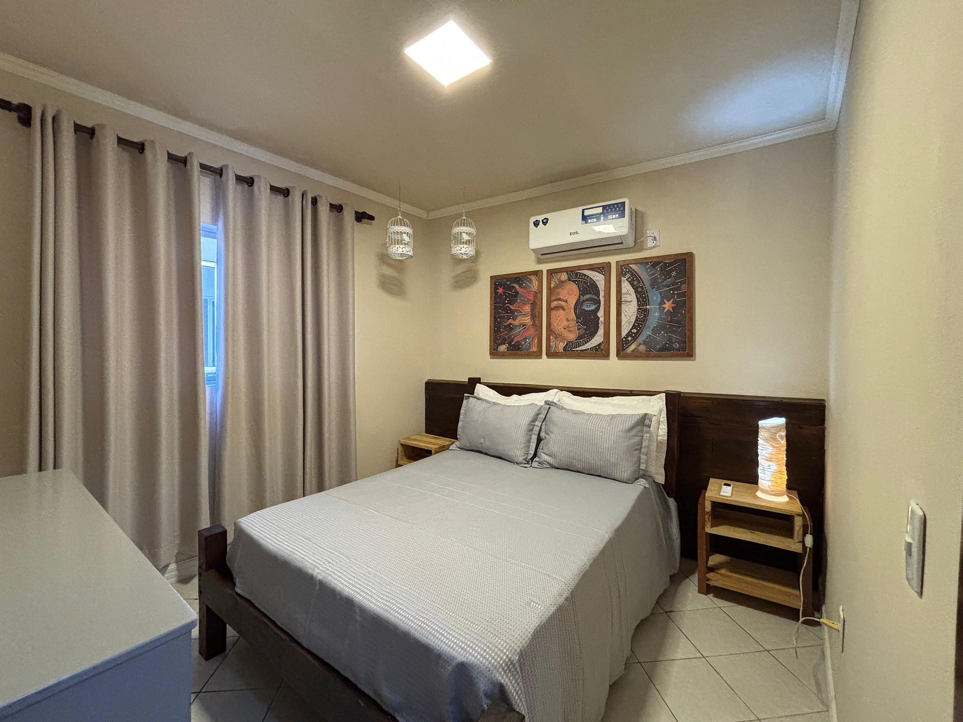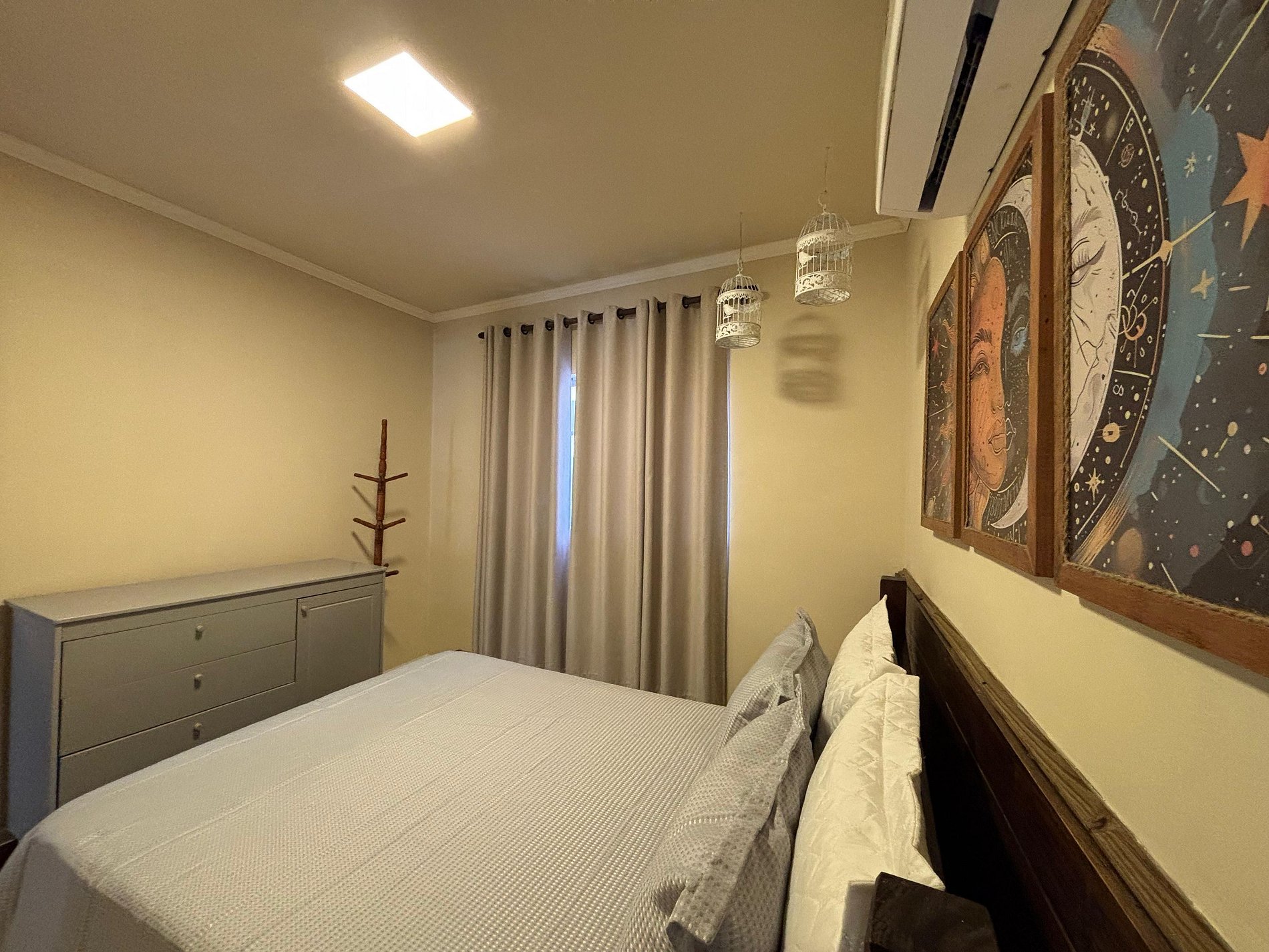 01 dormitório com cama de casal e ar condicionado