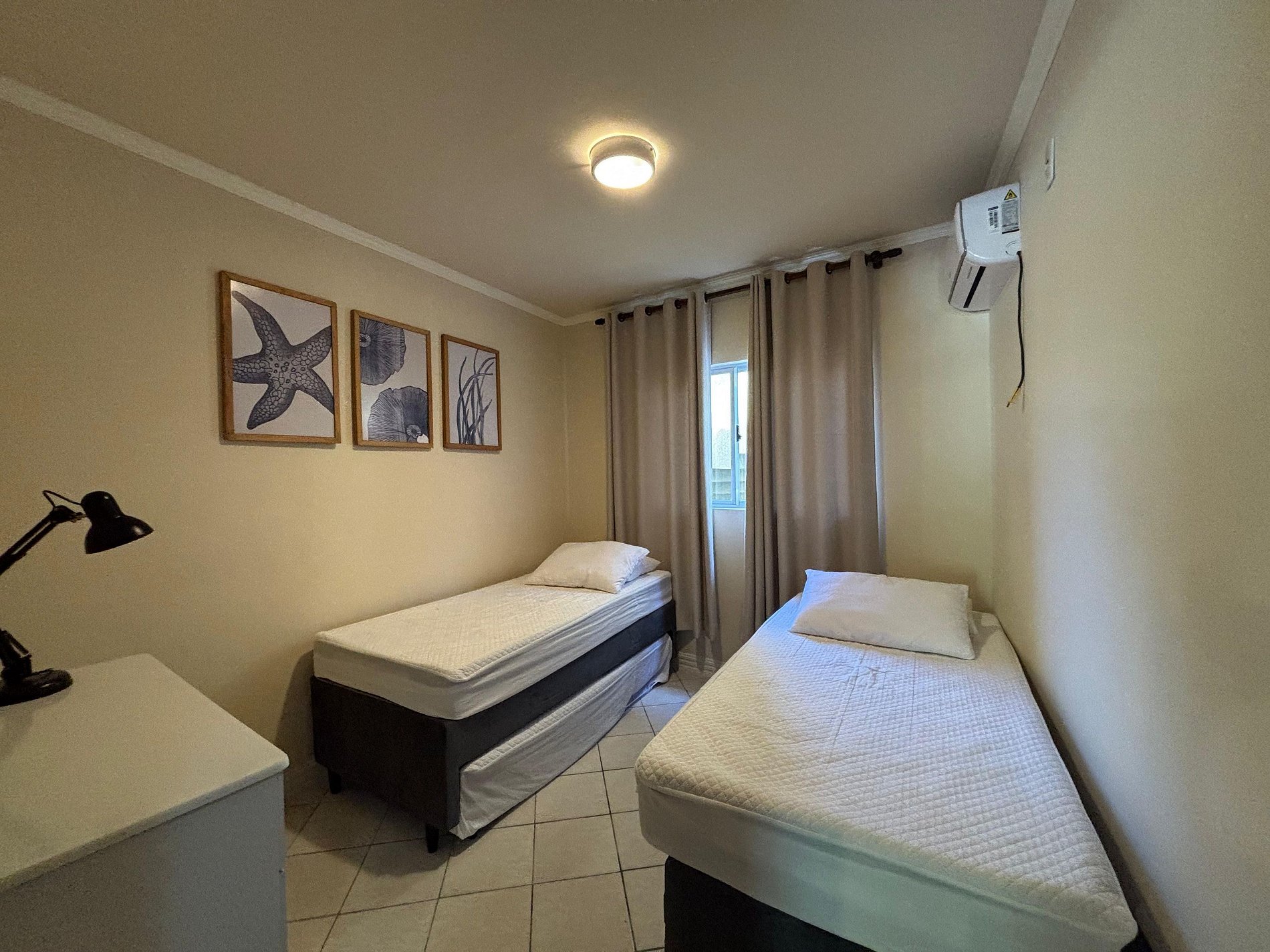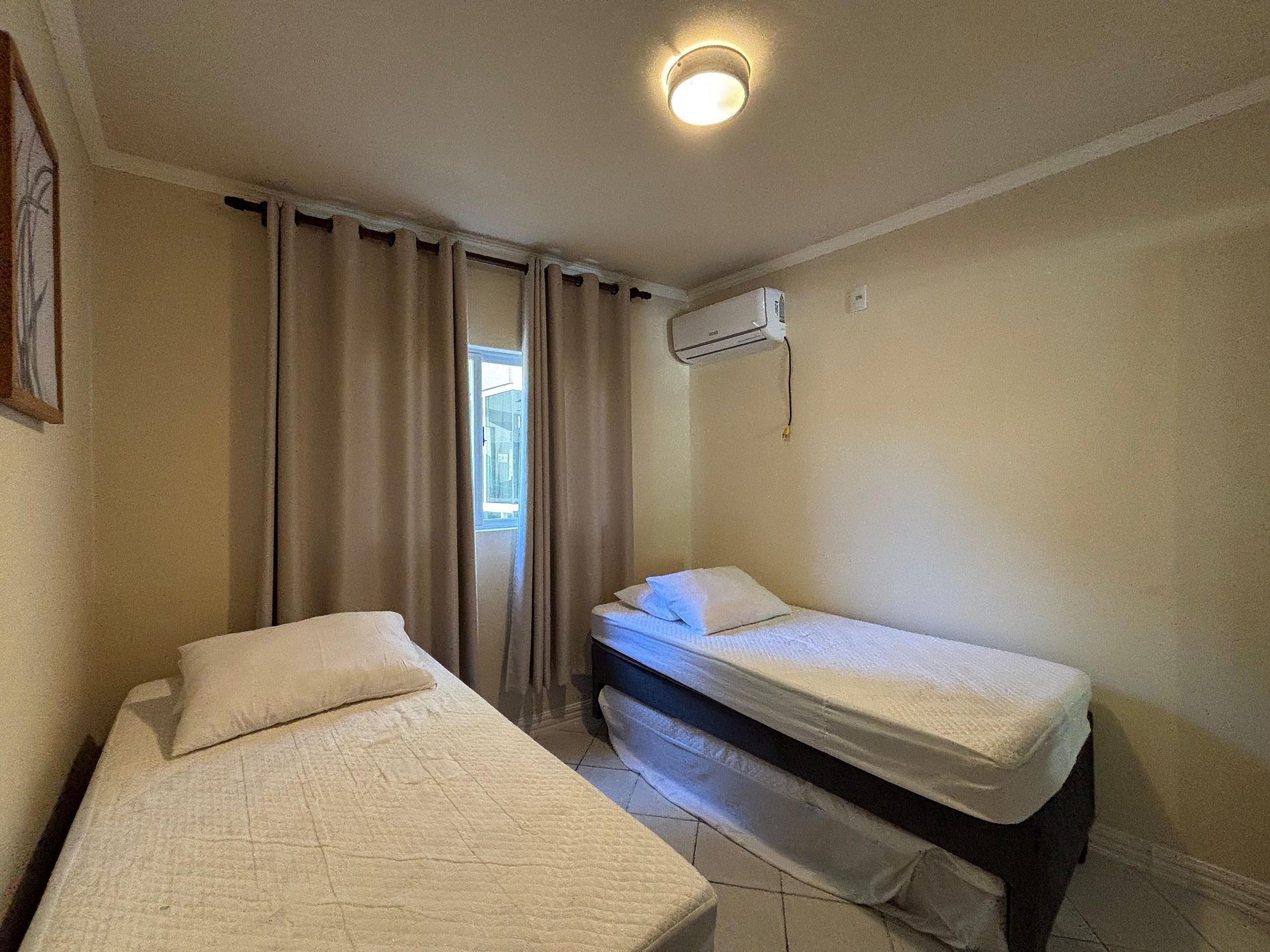 01 dormitório com 2 camas solteiro + 02 bicamas