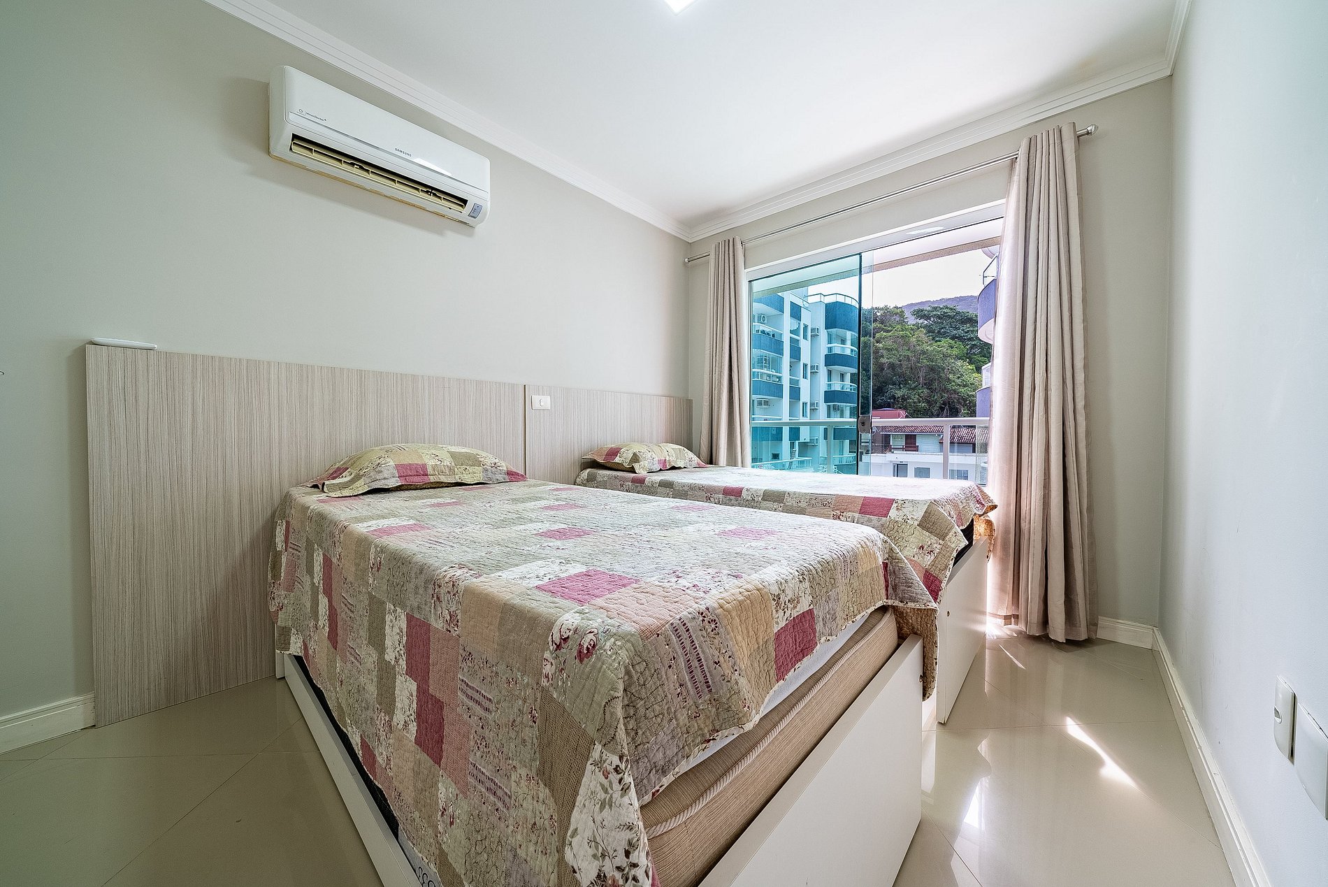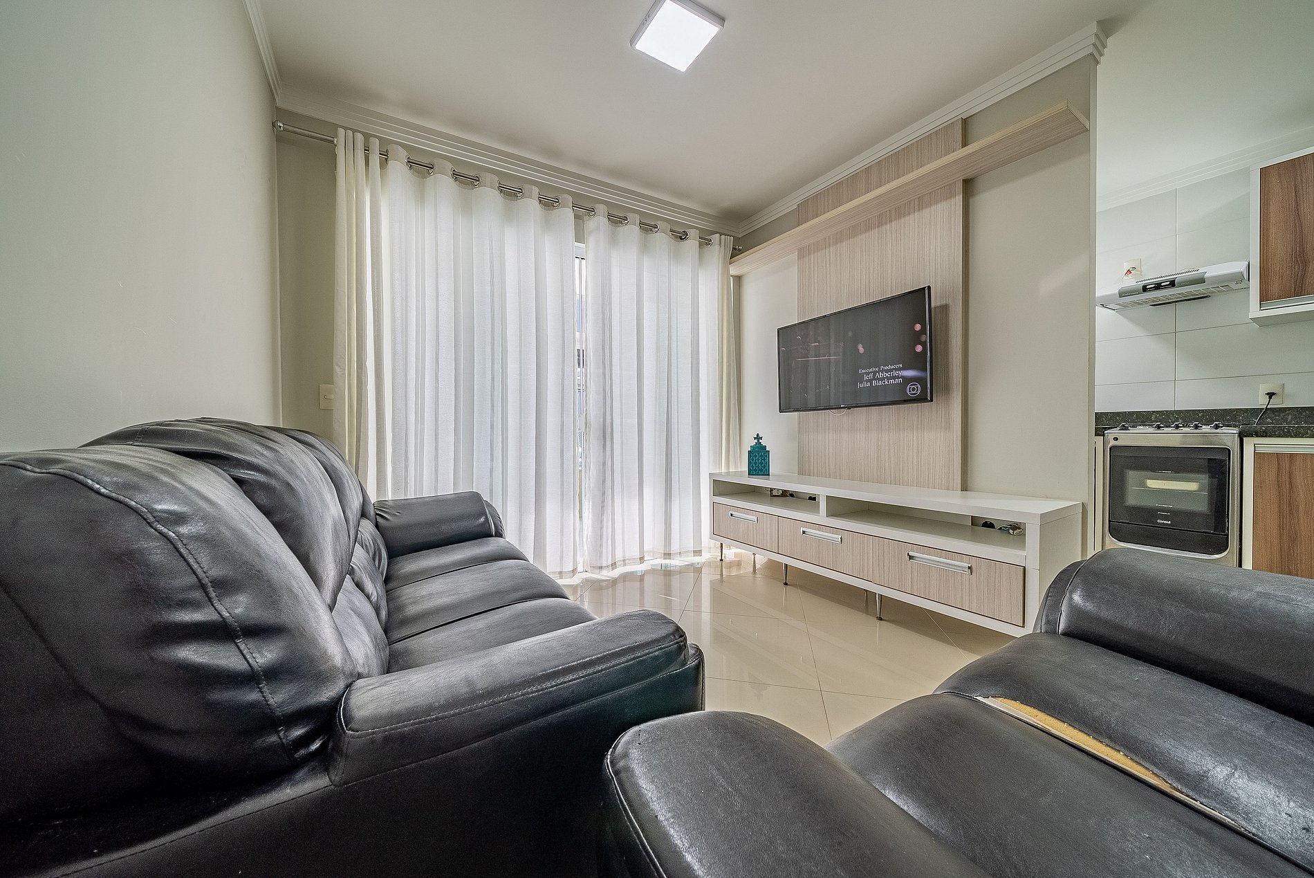 Este apartamento oferece praticidade e conforto a apenas 100m da Praia de Bombas. Possui 2 dormitórios sendo 1 suíte, sala de estar com TV, cozinha completa e mesa de jantar. A sacada com churrasqueira é ideal para momentos de lazer em família. Conta ainda com banheiro social, área de serviço com lavadora e tanque. Perfeito para quem busca localização privilegiada e um espaço funcional para curtir o litoral com tranquilidade.