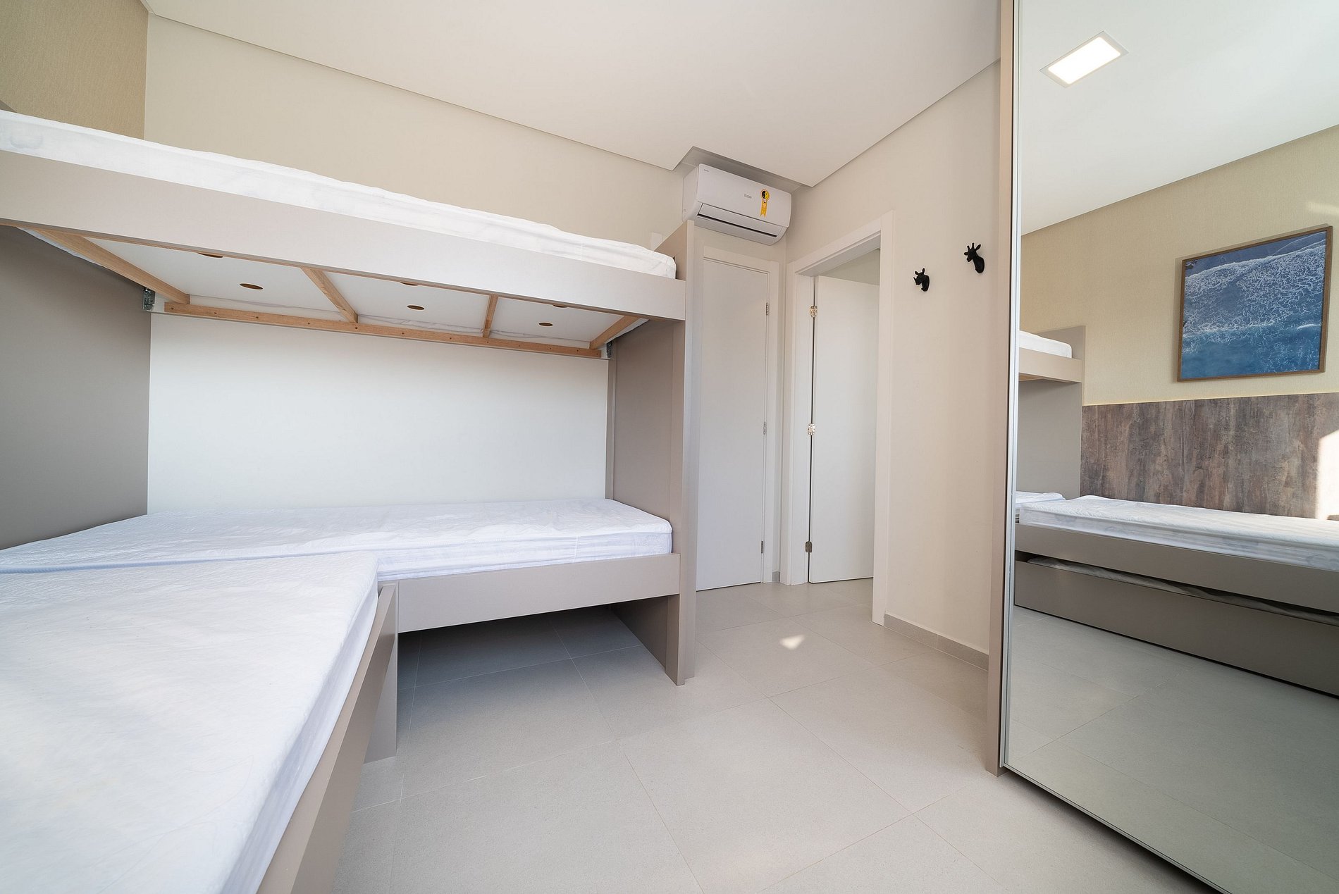 01 Suíte com 01 beliche + 01 cama de solteiro + cama auxiliar