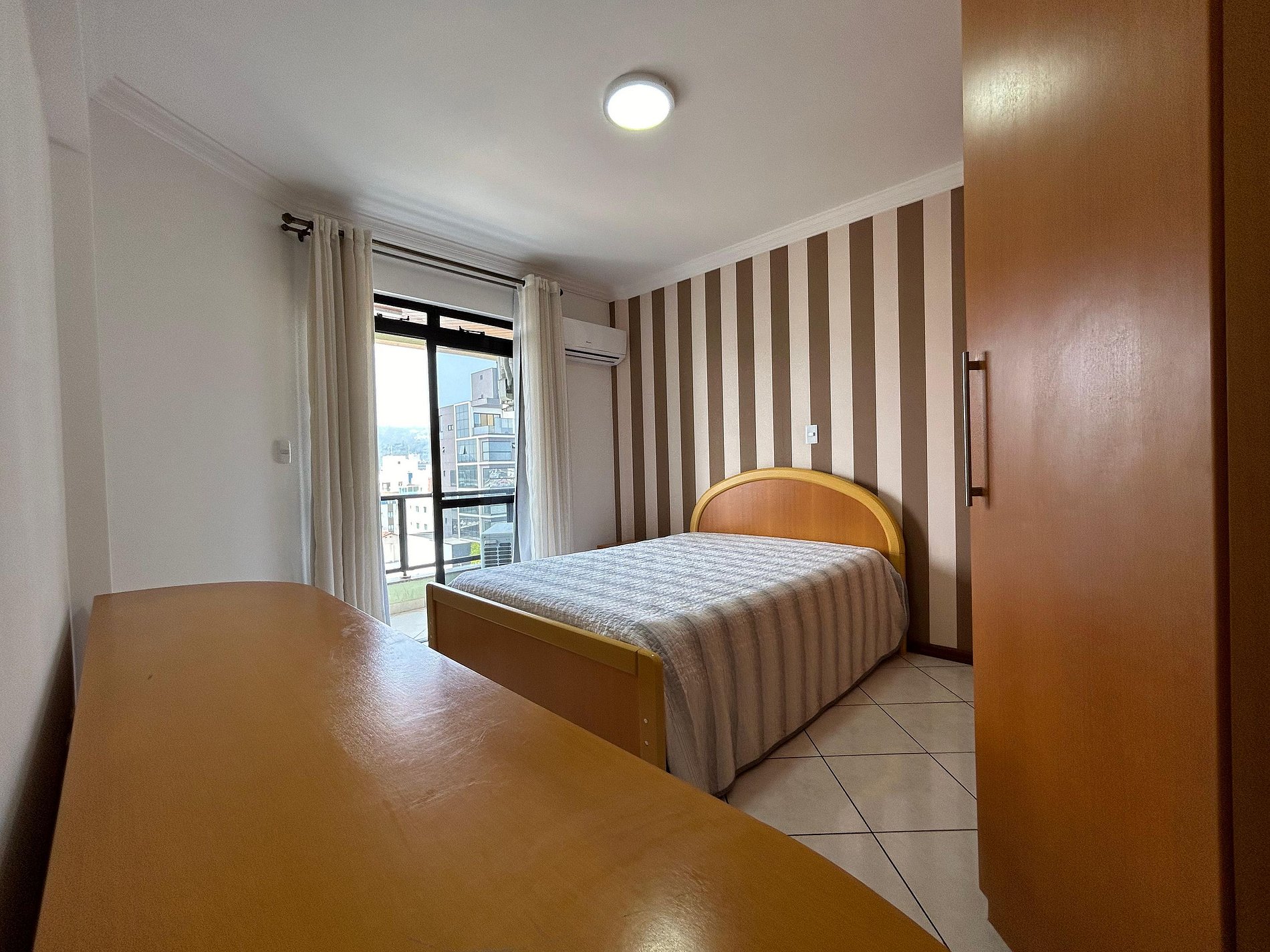01 dormitório com 2 camas box conjugada de solteiro sendo uma com auxiliar e mais 1 colchão de solteiro e ar condicionado