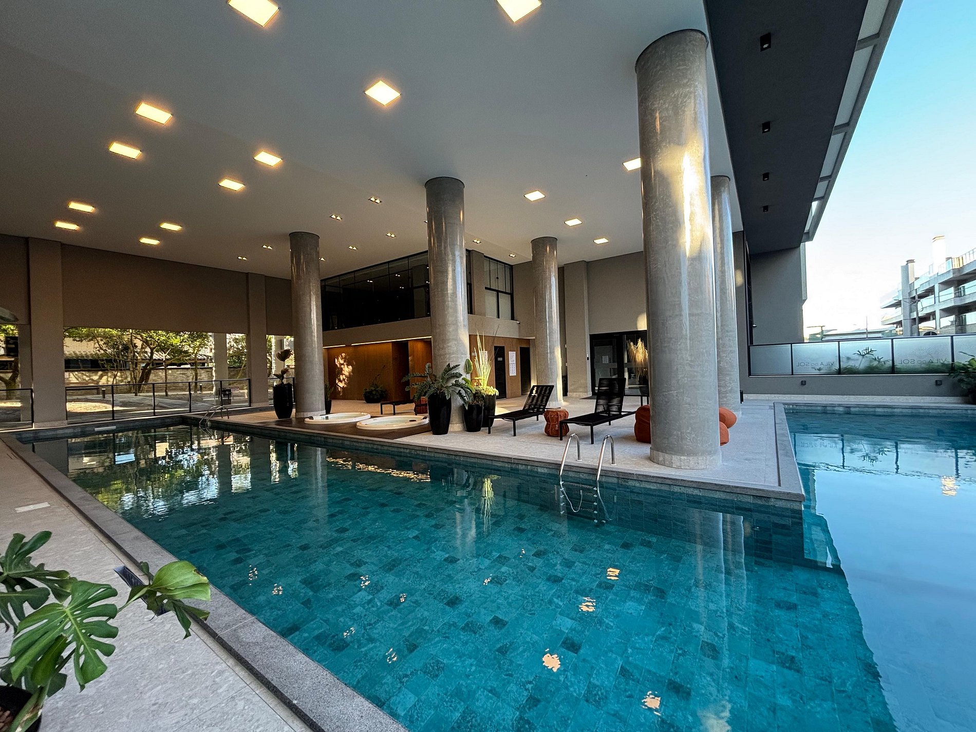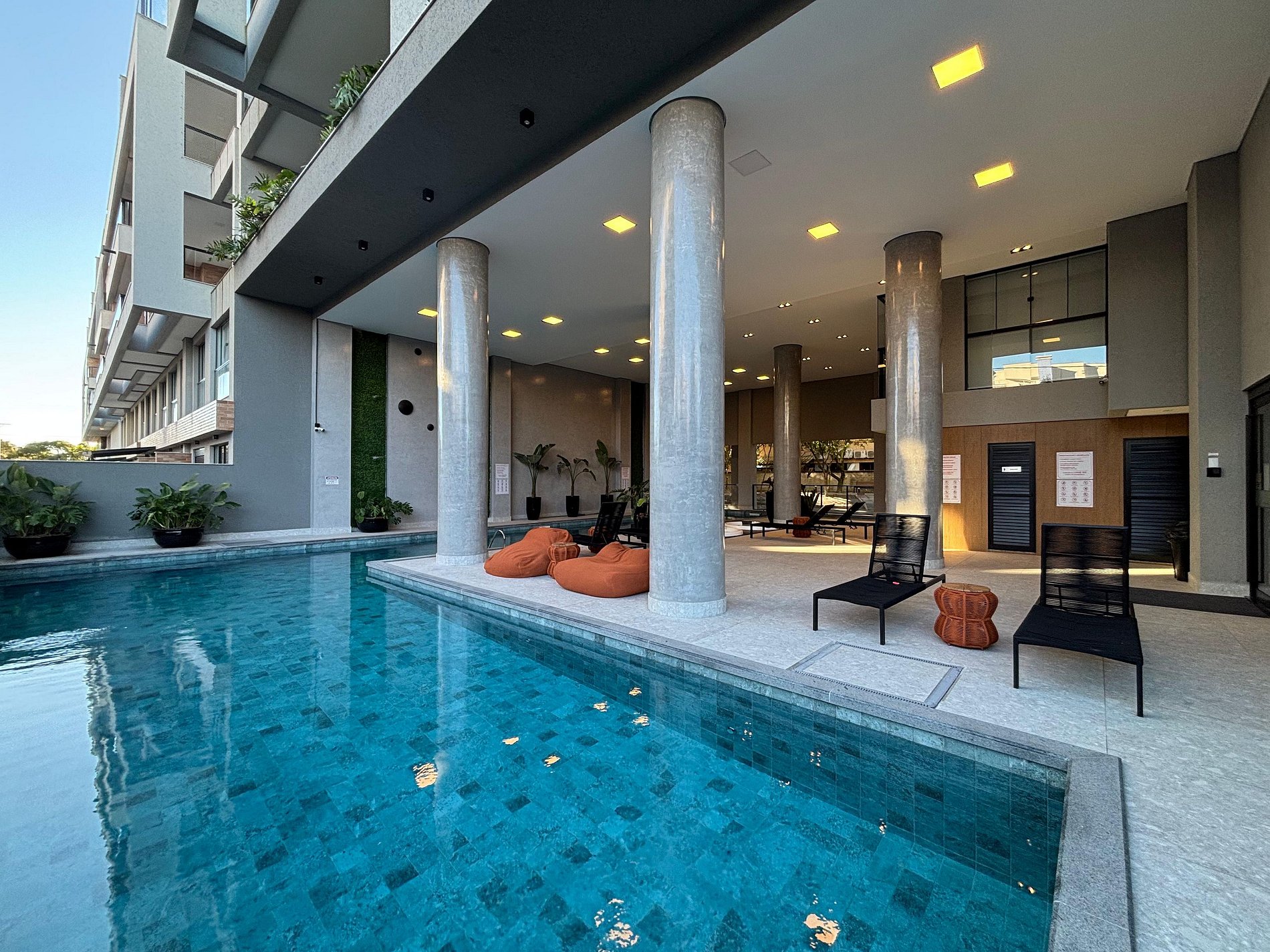 O condomínio dispõe de ampla piscina sem aquecimento
