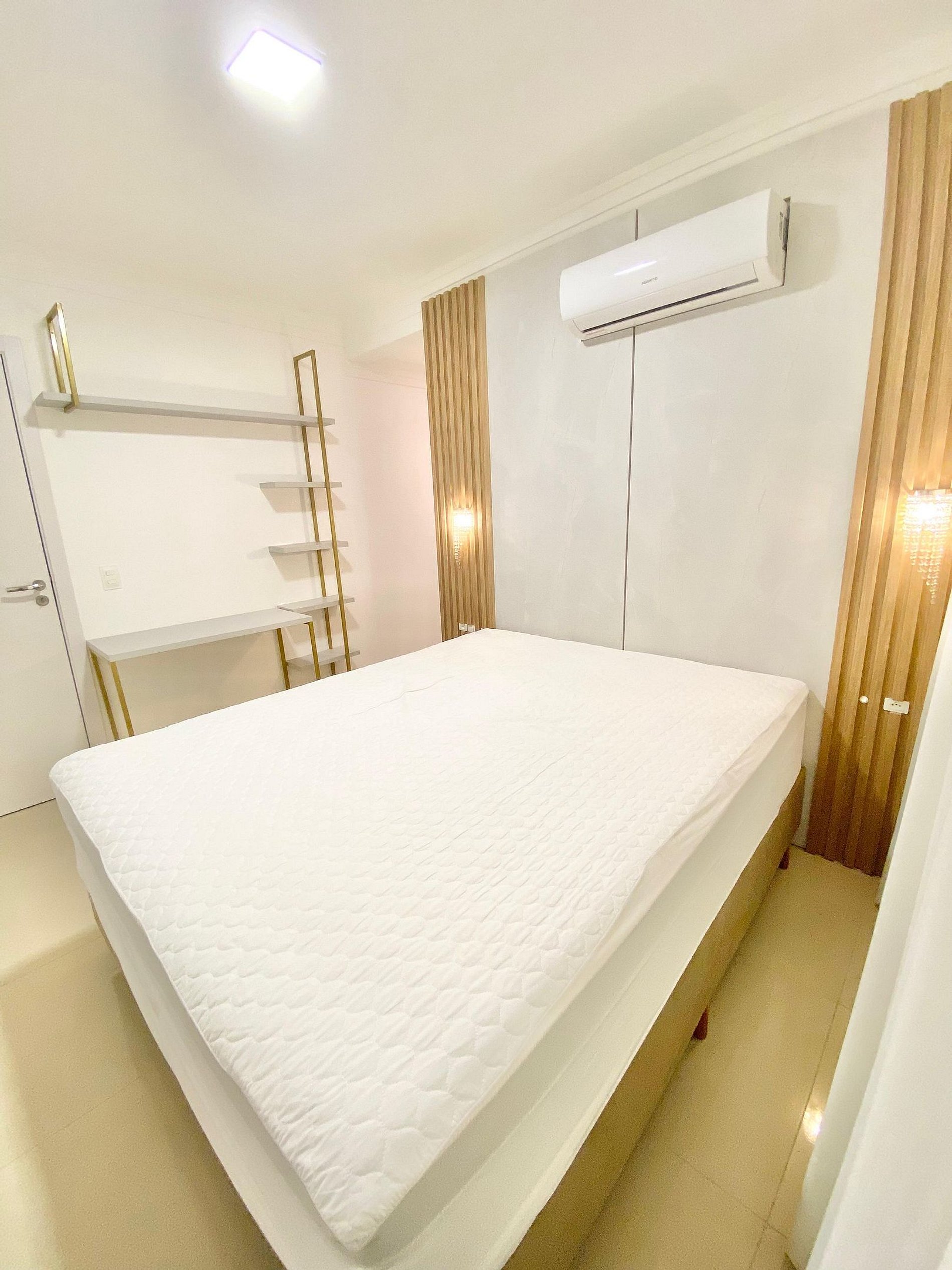 01 Dormitório com cama de solteiro + 01 cama auxiliar e ar condicionado;