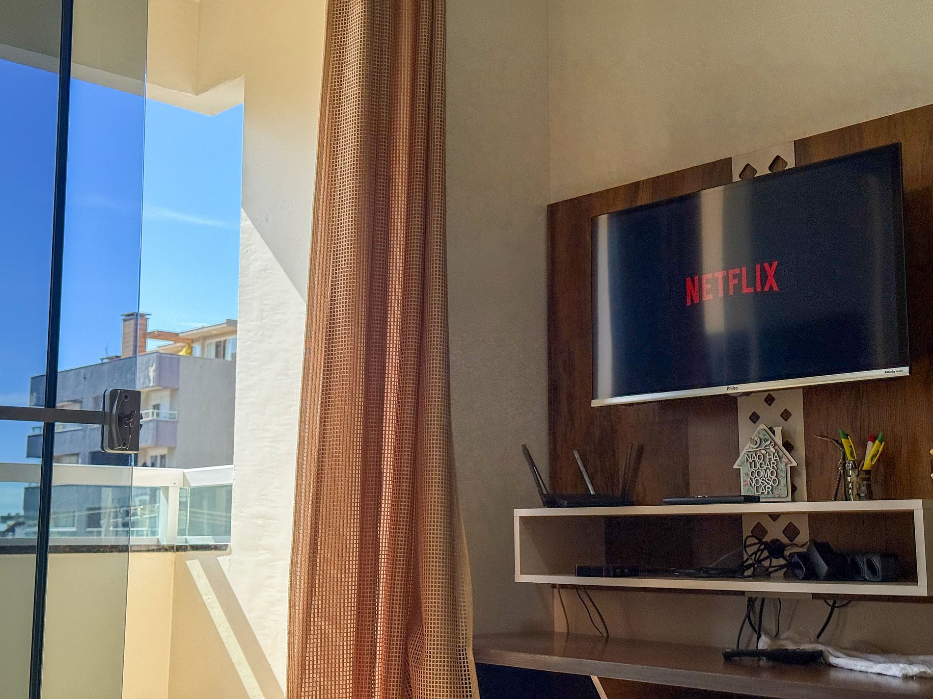 Sala de estar aconchegante e com Tv